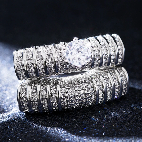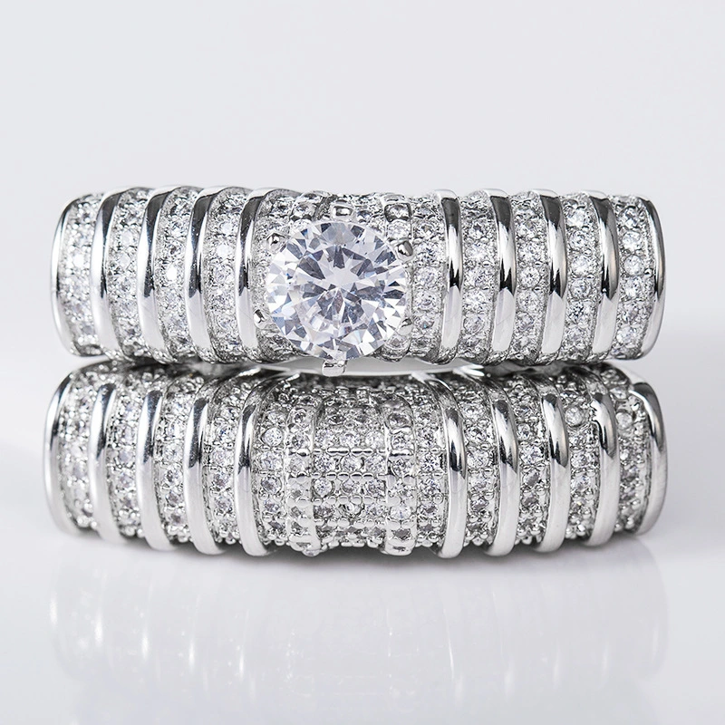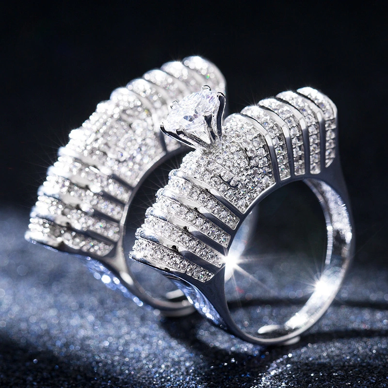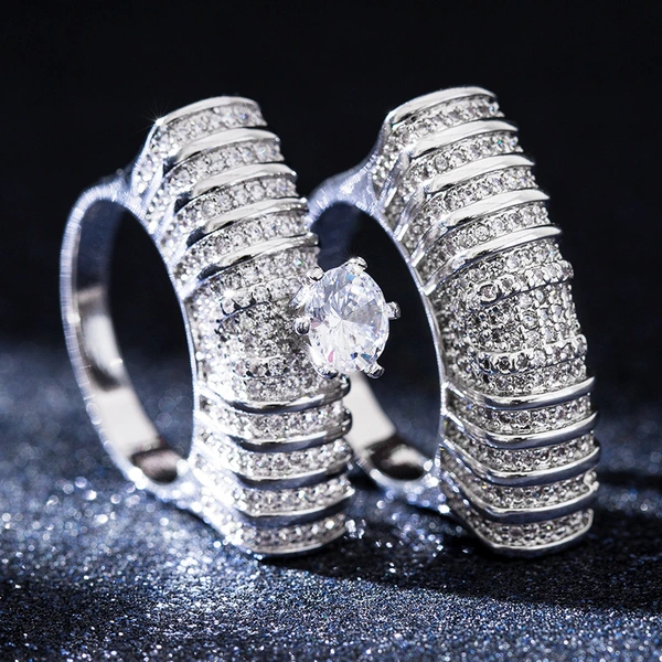 Классическое женское кольцо с четырьмя лапками, имитирующее циркон, с микро-инкрустацией, двухрядное двухцветное кольцо с поворотной рукояткой, обручальное кольцо для женщин