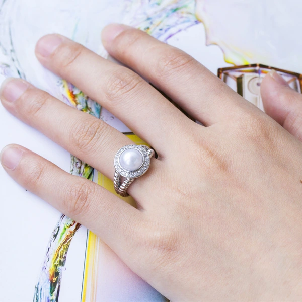 Прямые продажи с фабрики популярных ювелирных изделий, модных и изысканных обручальных колец с жемчугом и цирконием, женских колец из медного серебра оптом.