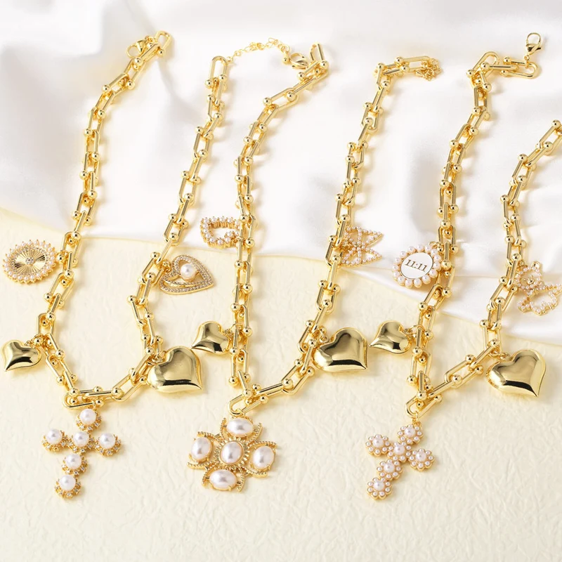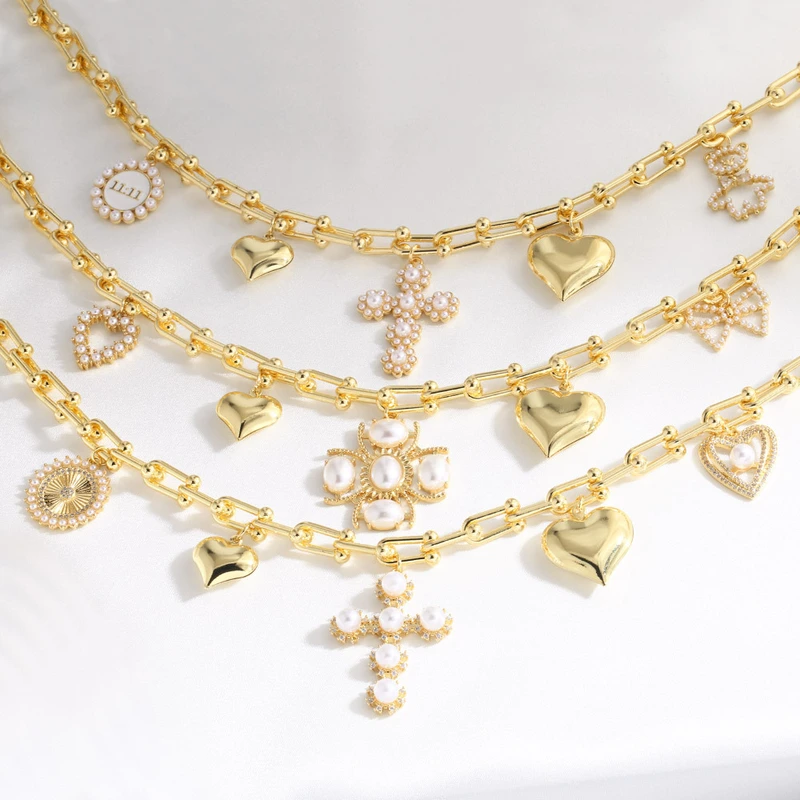 Распродажа, горячая распродажа, женское позолоченное ожерелье в виде крестика с жемчугом и сердцем, ключицы, nkb118
