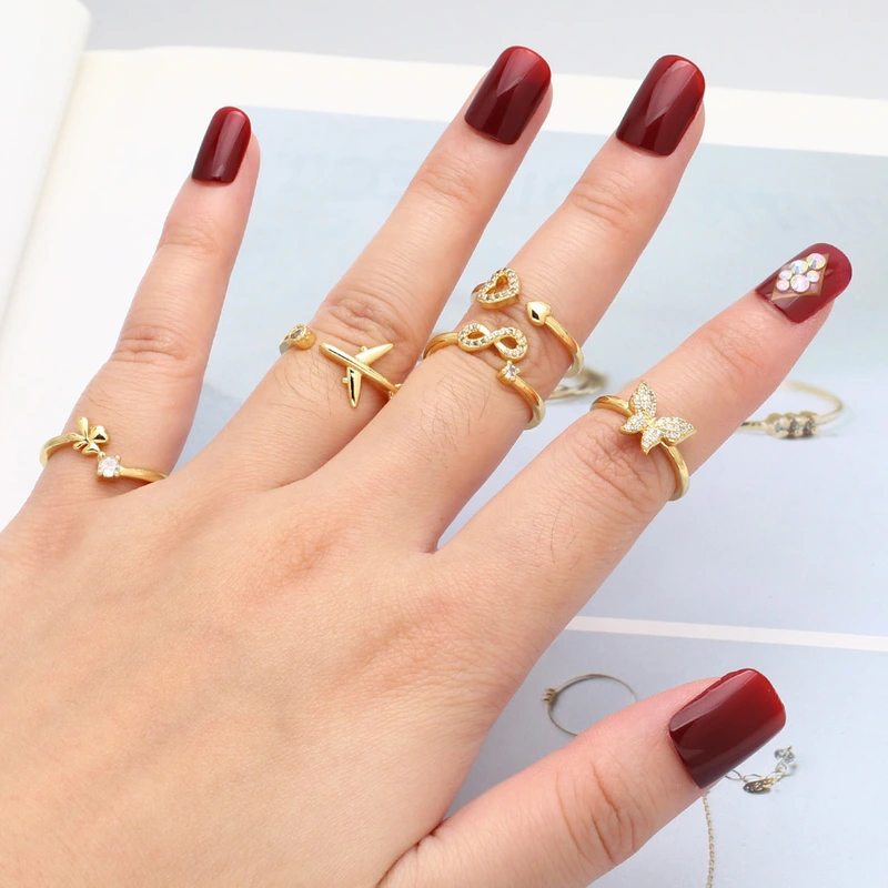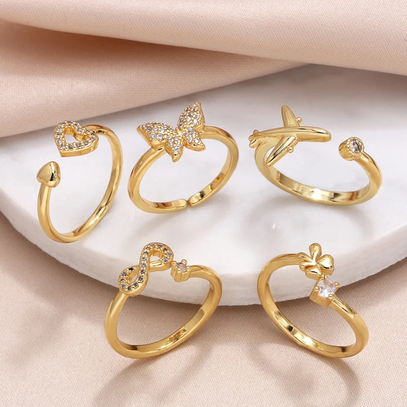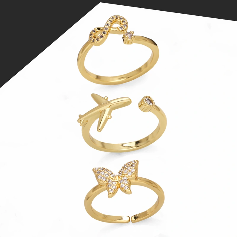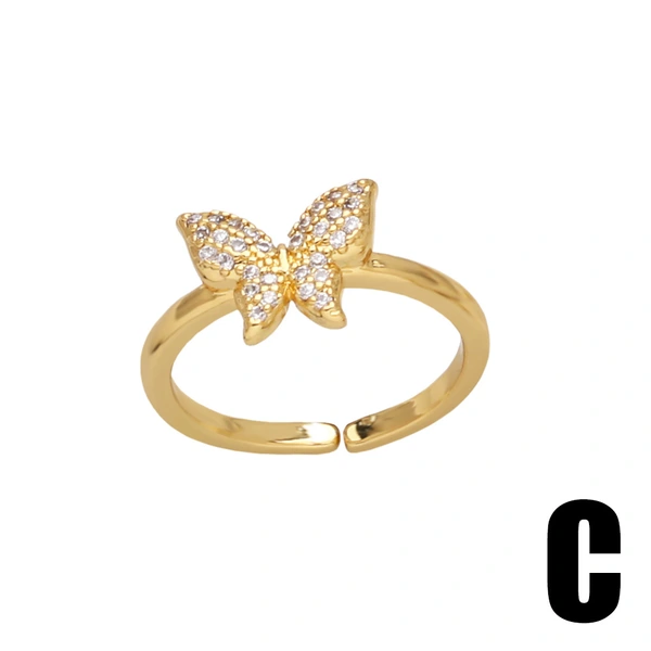 Распродажа, горячая распродажа, кольцо с инкрустацией из бабочки и циркония, женское универсальное позолоченное открытое кольцо ris84