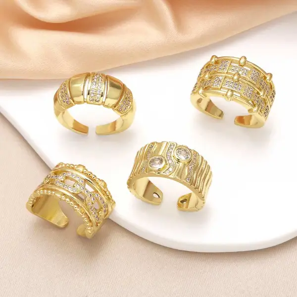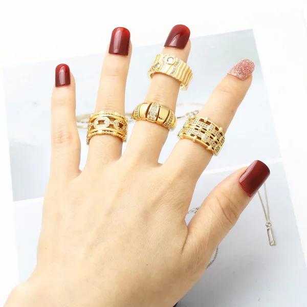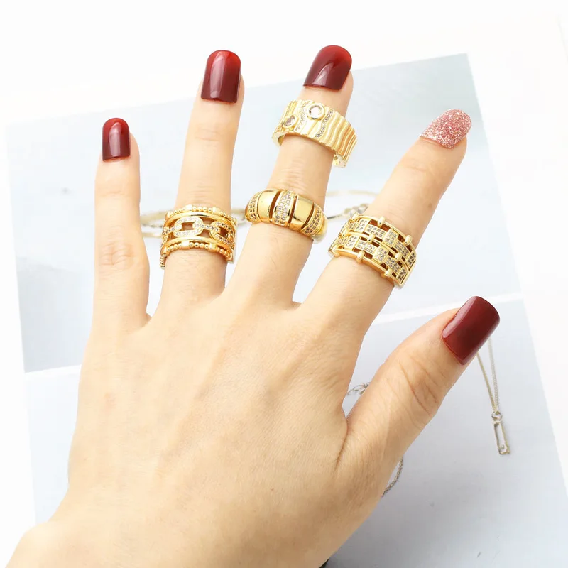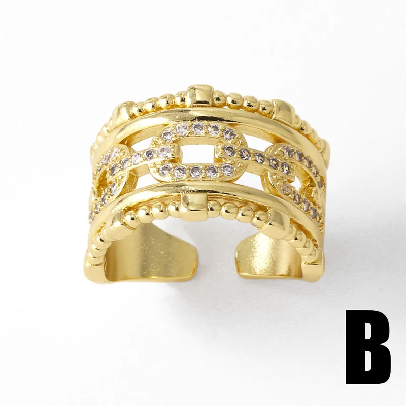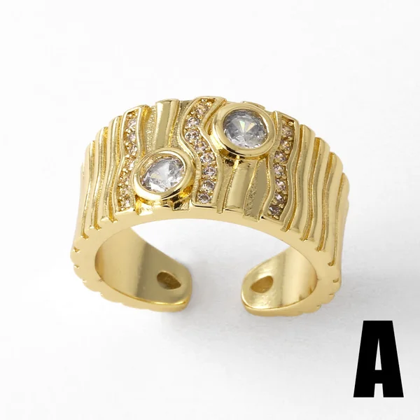 распродажа как ювелирное изделие, полое двухслойное кольцо с медным покрытием, инкрустированное настоящим золотом, открытое кольцо с цирконом rij78