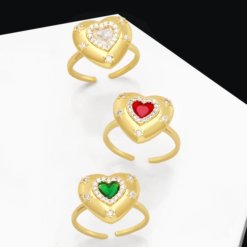 Распродажа модного кольца на указательный палец с разноцветным цирконием в форме сердца, женское кольцо с нишевым дизайном, любовное кольцо rir34