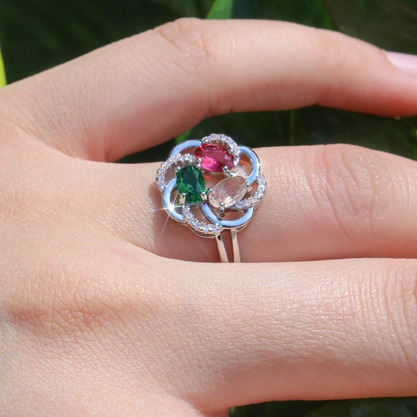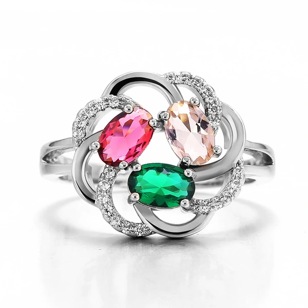 Рекомендация по новому продукту для интернет-магазина: высококачественное женское кольцо с цветным цирконием, медное серебро, креативное кольцо с цветочным узором