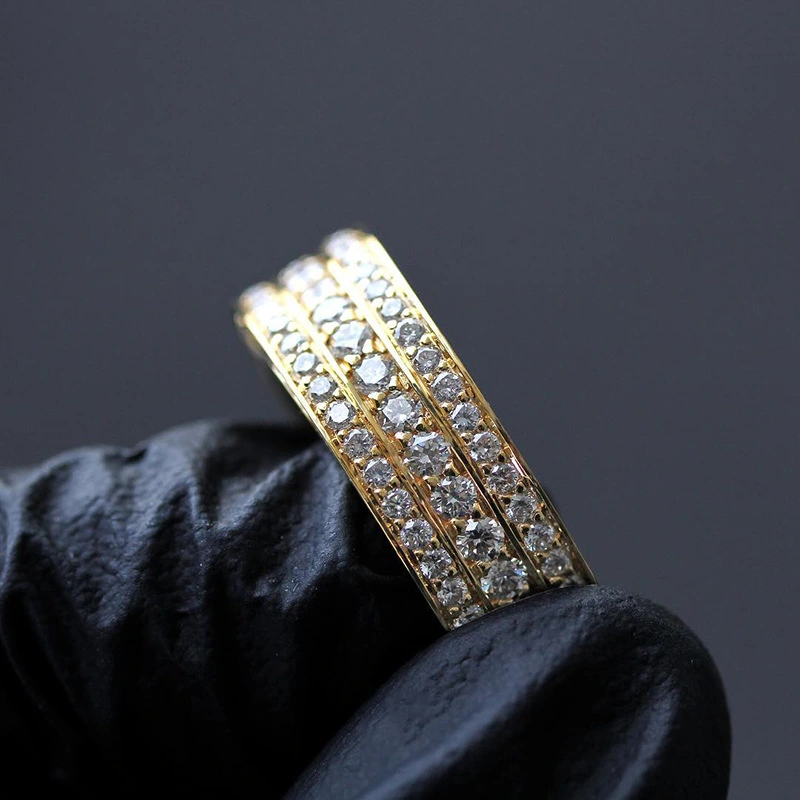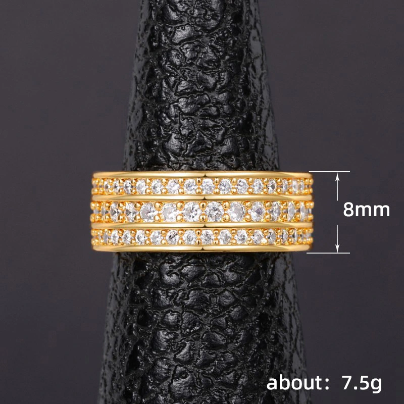 роскошное кольцо унисекс с тремя рядами бриллиантов и вставками из циркония, символ статуса для элитных мужских колец