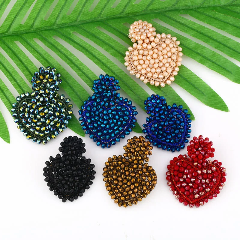 Серьги в форме сердца из рисовых бусин, женские, с креативной европейской и американской индивидуальностью, популярные серьги в форме персикового сердца, оптовая продажа erv14