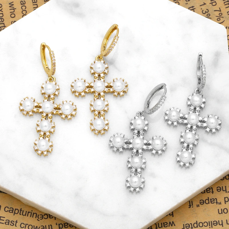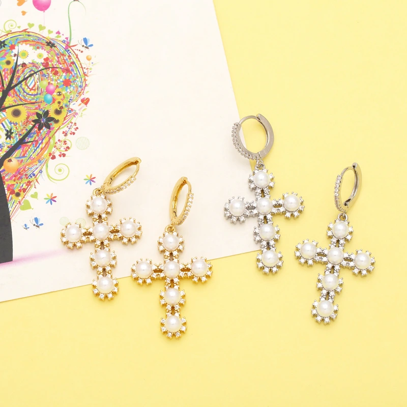 Серьги-крестики с жемчугом из циркония для женщин, элитные серьги-крестики, темпераментные серьги с индивидуальностью ert46