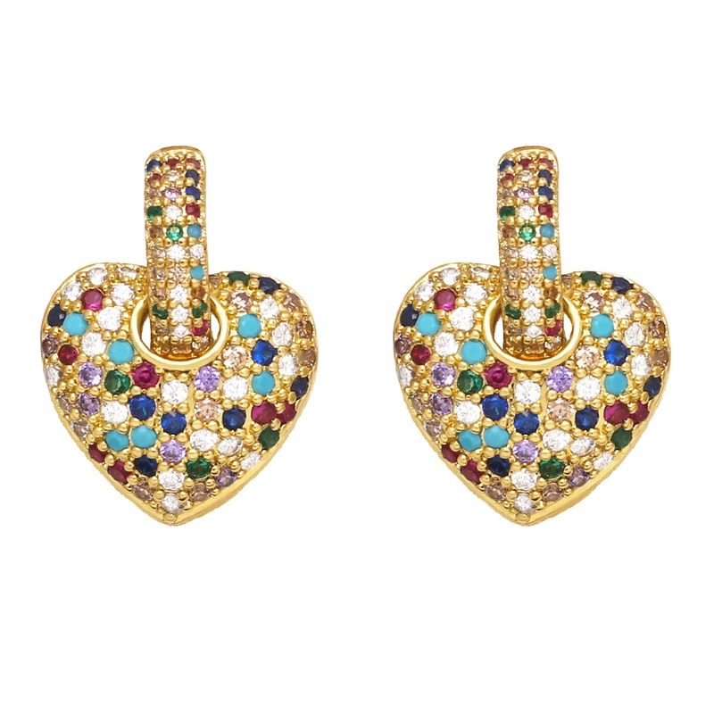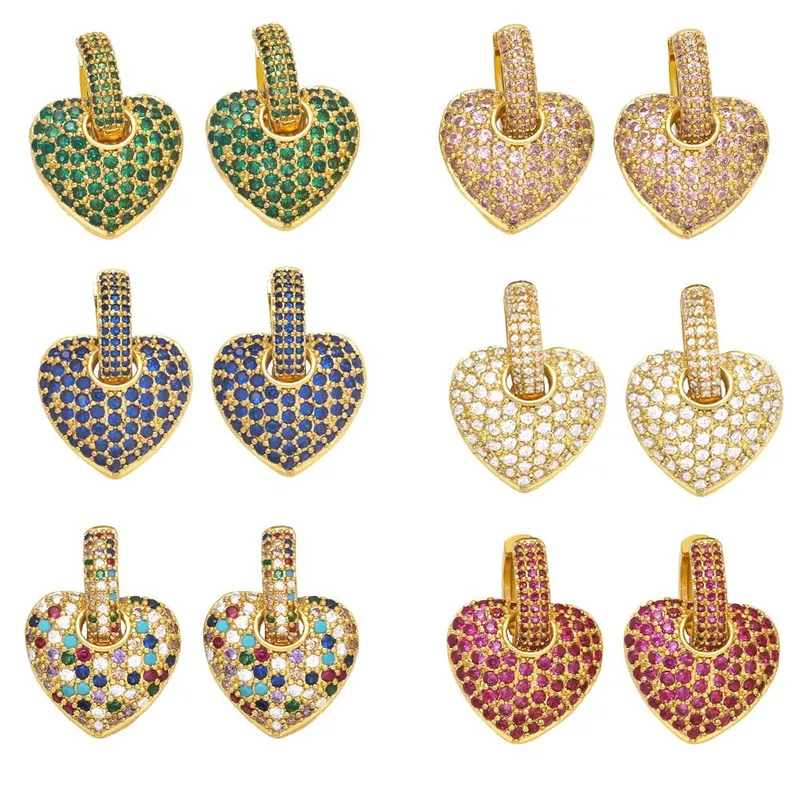 Серьги-сердечки с микро-инкрустацией из цветного циркония для женщин, ретро-стиль, модные застежки-пряжки, европейские и американские, простые серьги в форме сердца, era030
