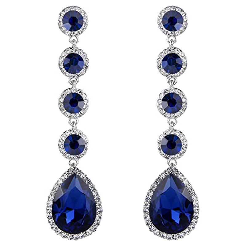 Длинные круглые серьги в европейском и американском стиле с королевским синим цирконом в стиле ретро, ​​простые, для банкета знаменитостей, темпераментные дамские серьги