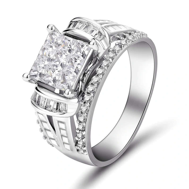 Новое кольцо принцессы в форме квадрата, популярное в европейском и американском стиле, инкрустированное цирконием, женское ювелирное кольцо для предложения руки и сердца