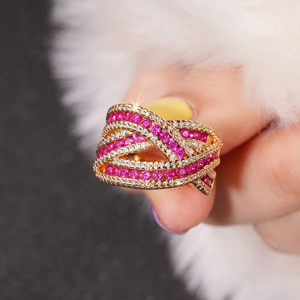 Классическое женское кольцо с четырьмя лапками, имитирующее циркон, с микро-инкрустацией, двухрядное двухцветное кольцо с поворотной рукояткой, обручальное кольцо для женщин