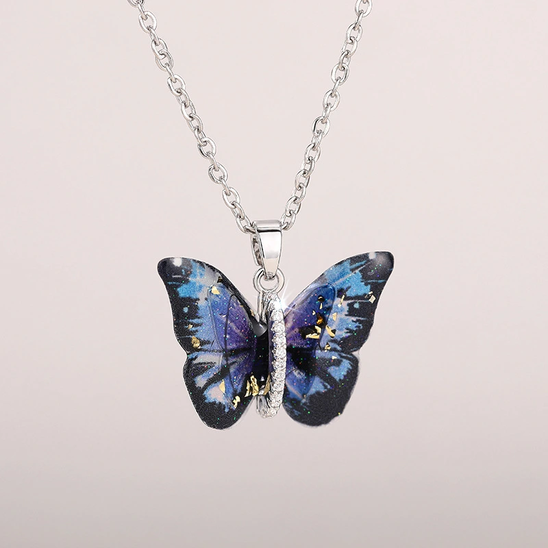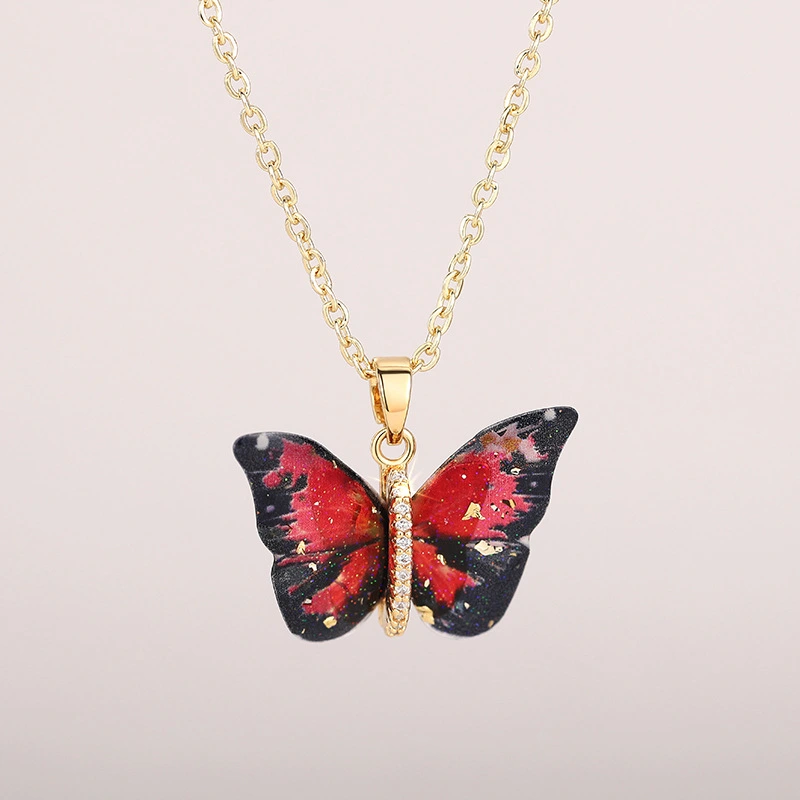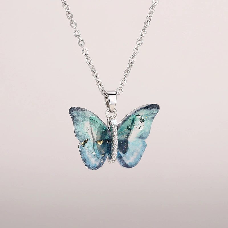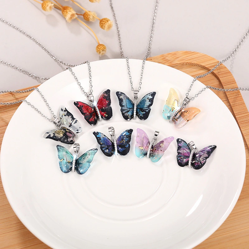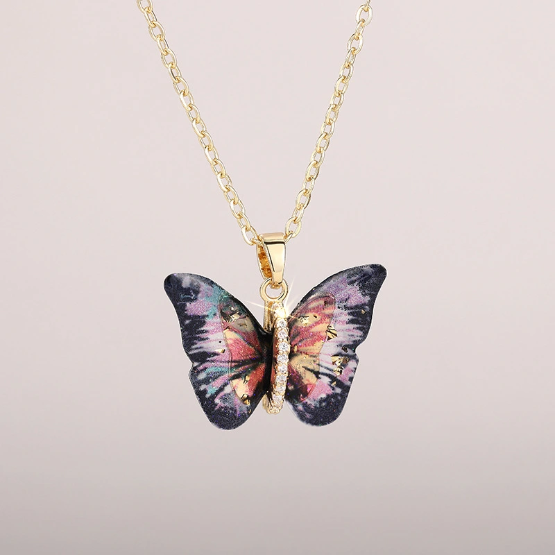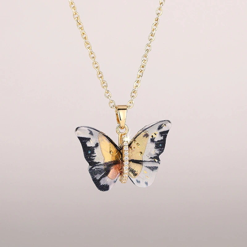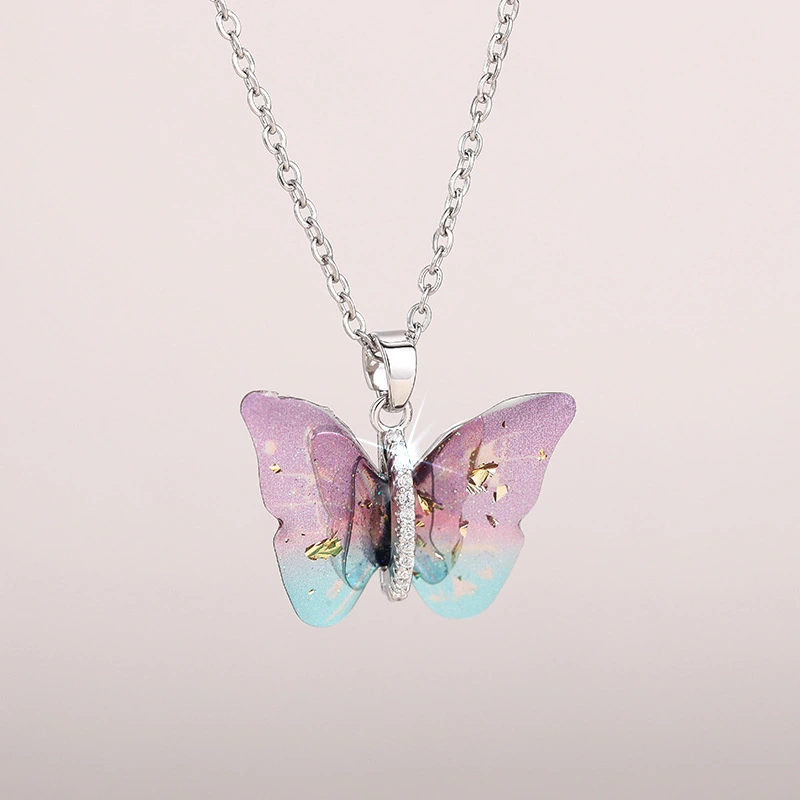 Японское и корейское лесное акриловое ожерелье с женским градиентом цвета бабочки, многослойное ожерелье из феи