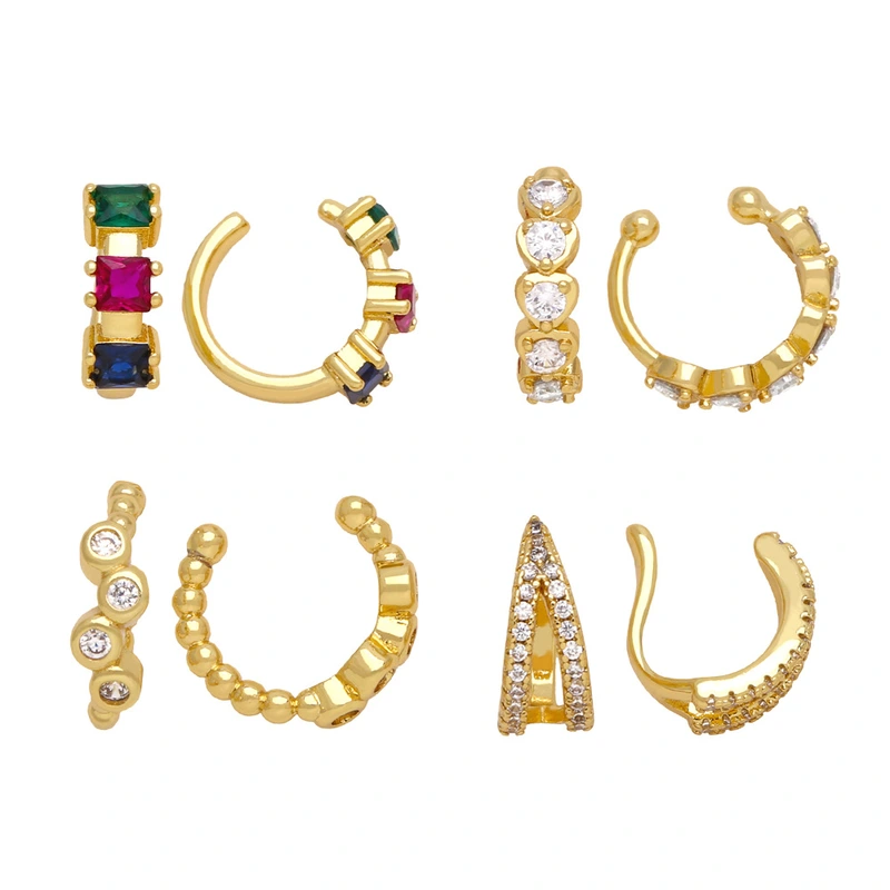 Серьги-клипсы из 18-каратного золота в европейском и американском стиле с цветным цирконием, с уникальным дизайном, eru52