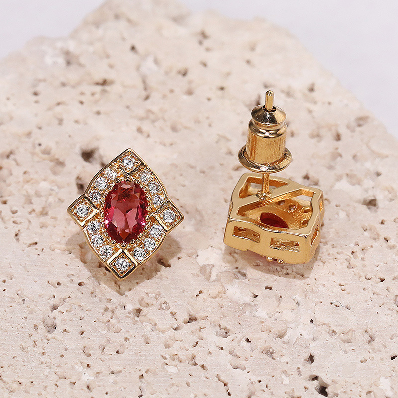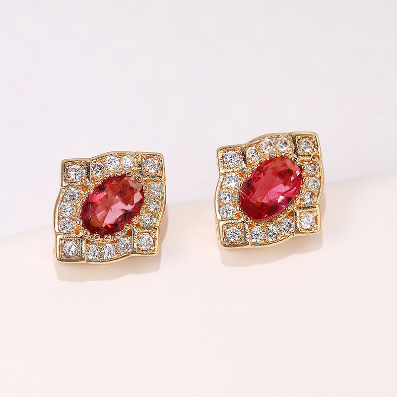 Ruili Colored Gemstone Series Earrings Palace Retro Imitation Red Corundum Zircon Earrings Anniversary Gift