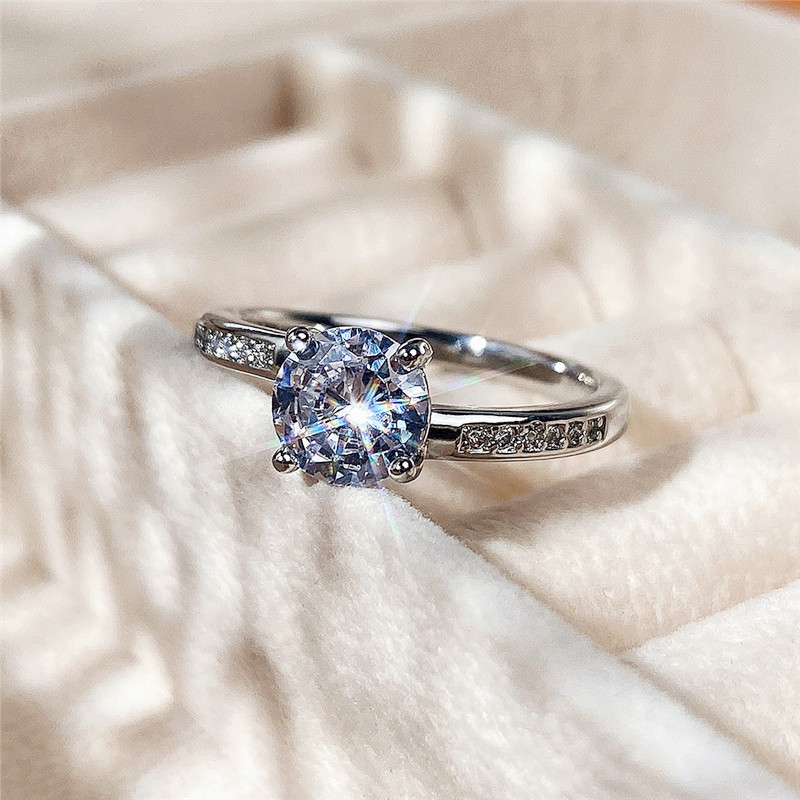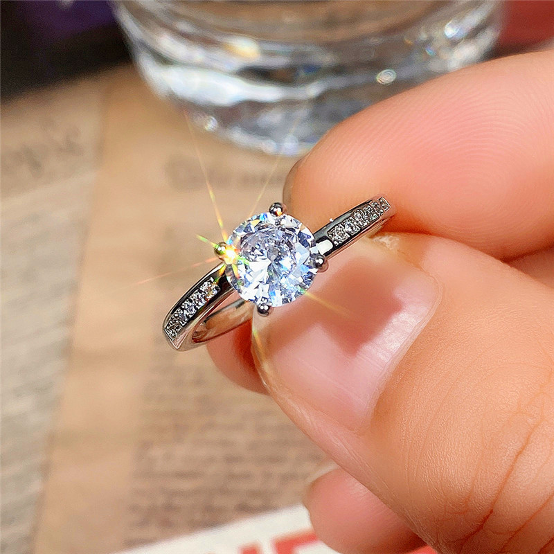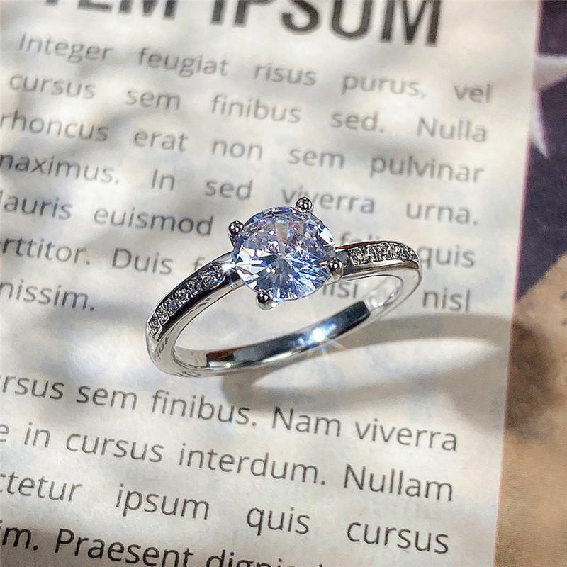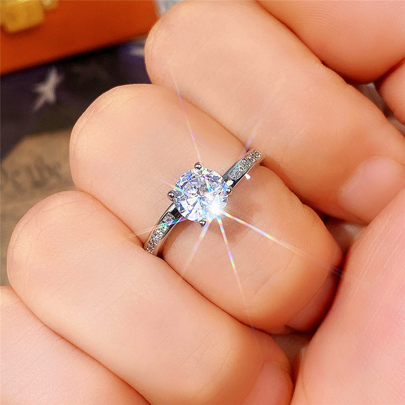 Micro-inlaid celebrity style classic all-match popular ring six-claw zircon wedding ring European and American style light luxury ring