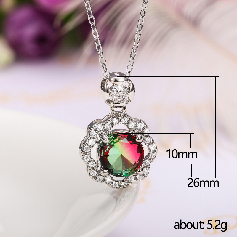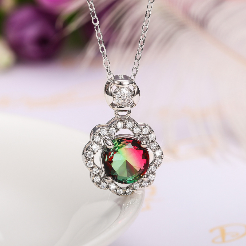 Ruili magazine jewelry fashion colored gem flower pendant necklace for women simple light luxury style necklace