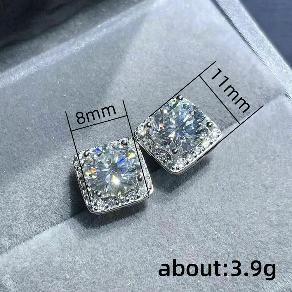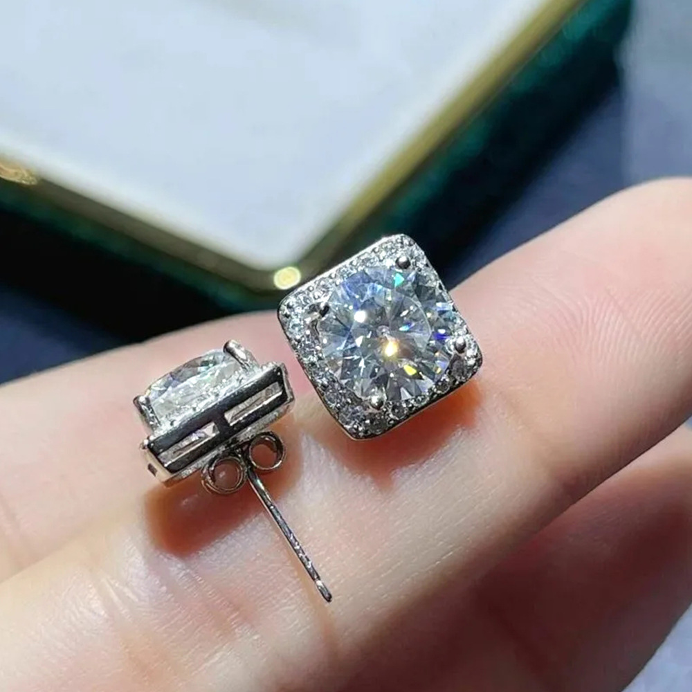 Ruili Magazine Square Earrings Exquisite Full Diamond Geometric Round Diamond Zircon Earrings Basic All-match Earrings