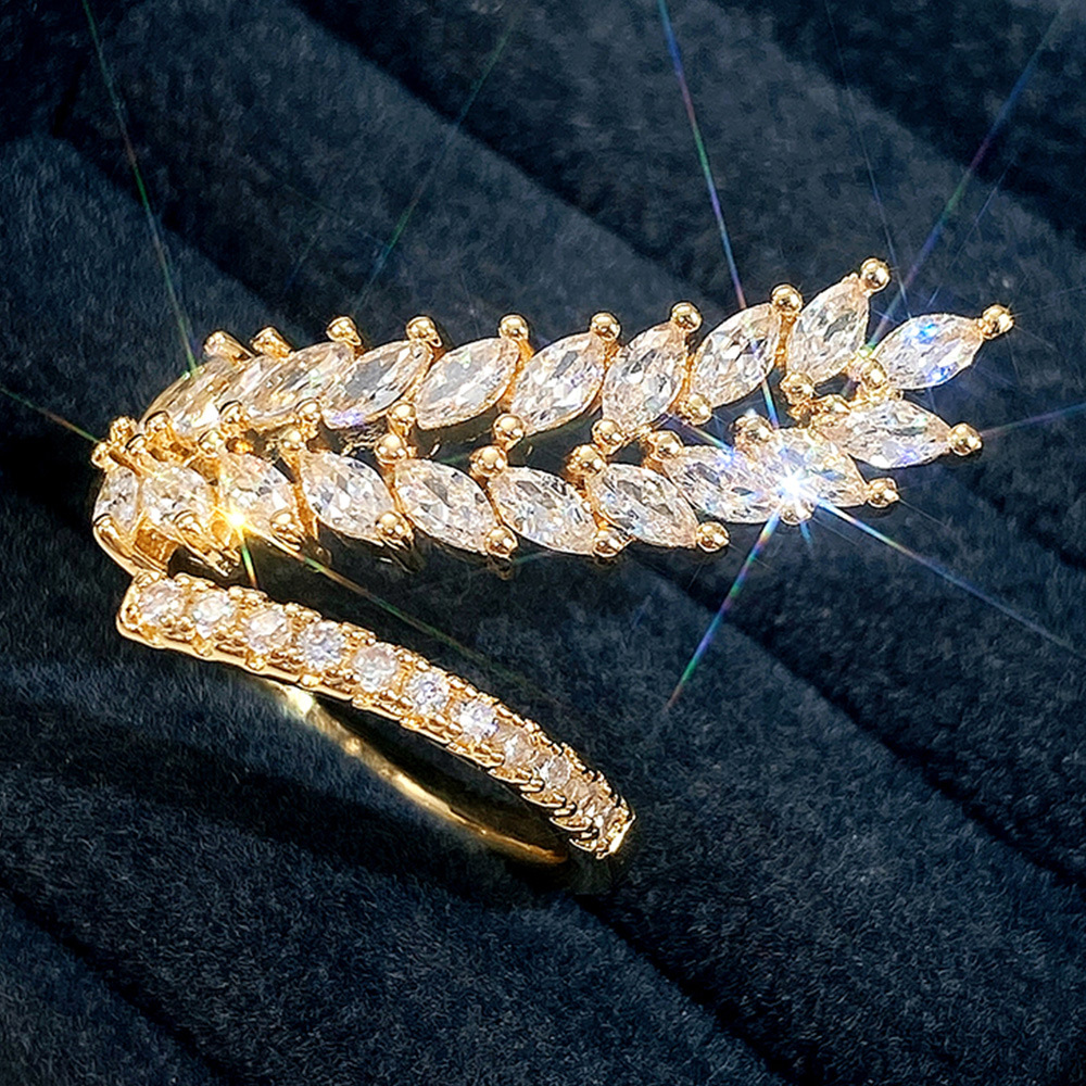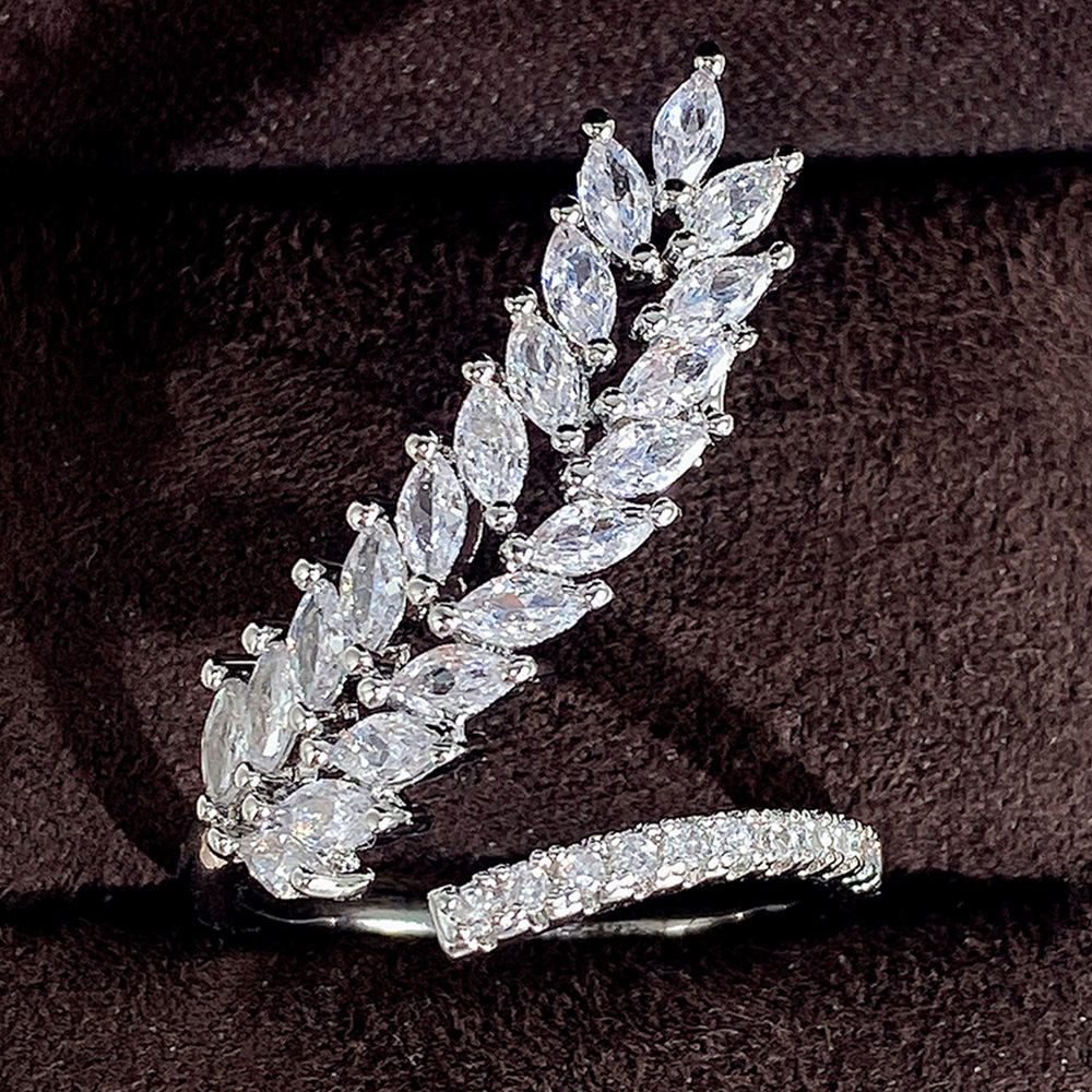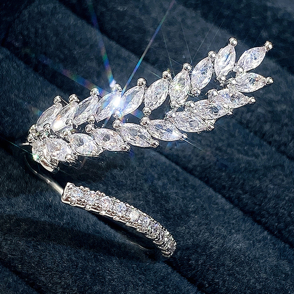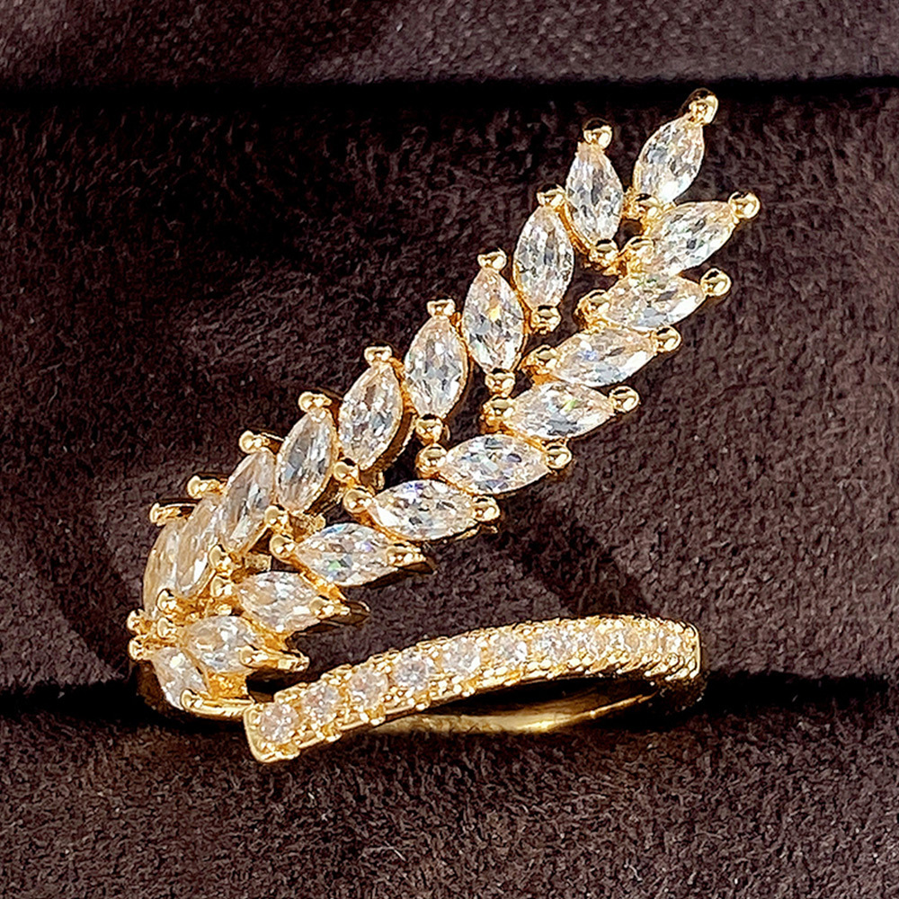 Ruili magazine style open ring creative wheat ear shape full diamond women's ring light luxury shining zircon ring