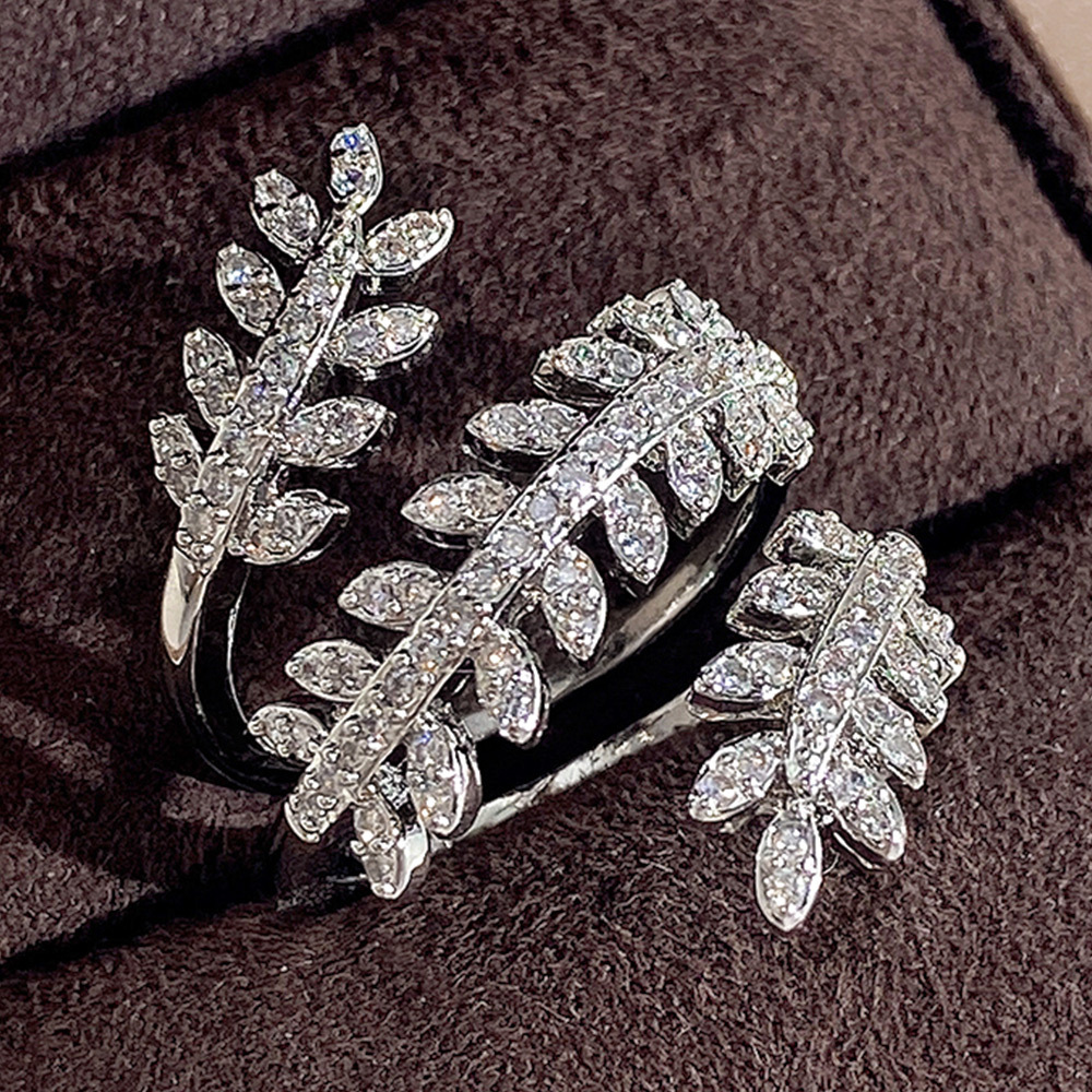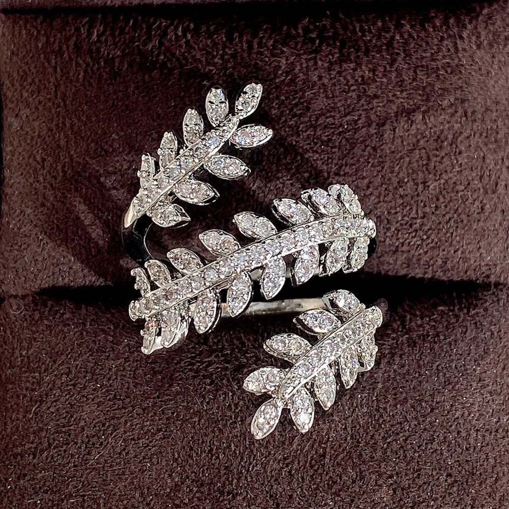 Ruili magazine style open ring light luxury wheat ear full diamond zircon women's ring copper plated white gold zircon ring