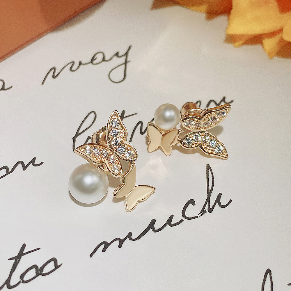 Same style bow earrings Korean style asymmetrical imitation pearl earrings