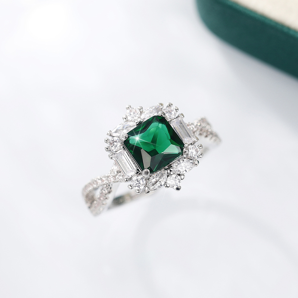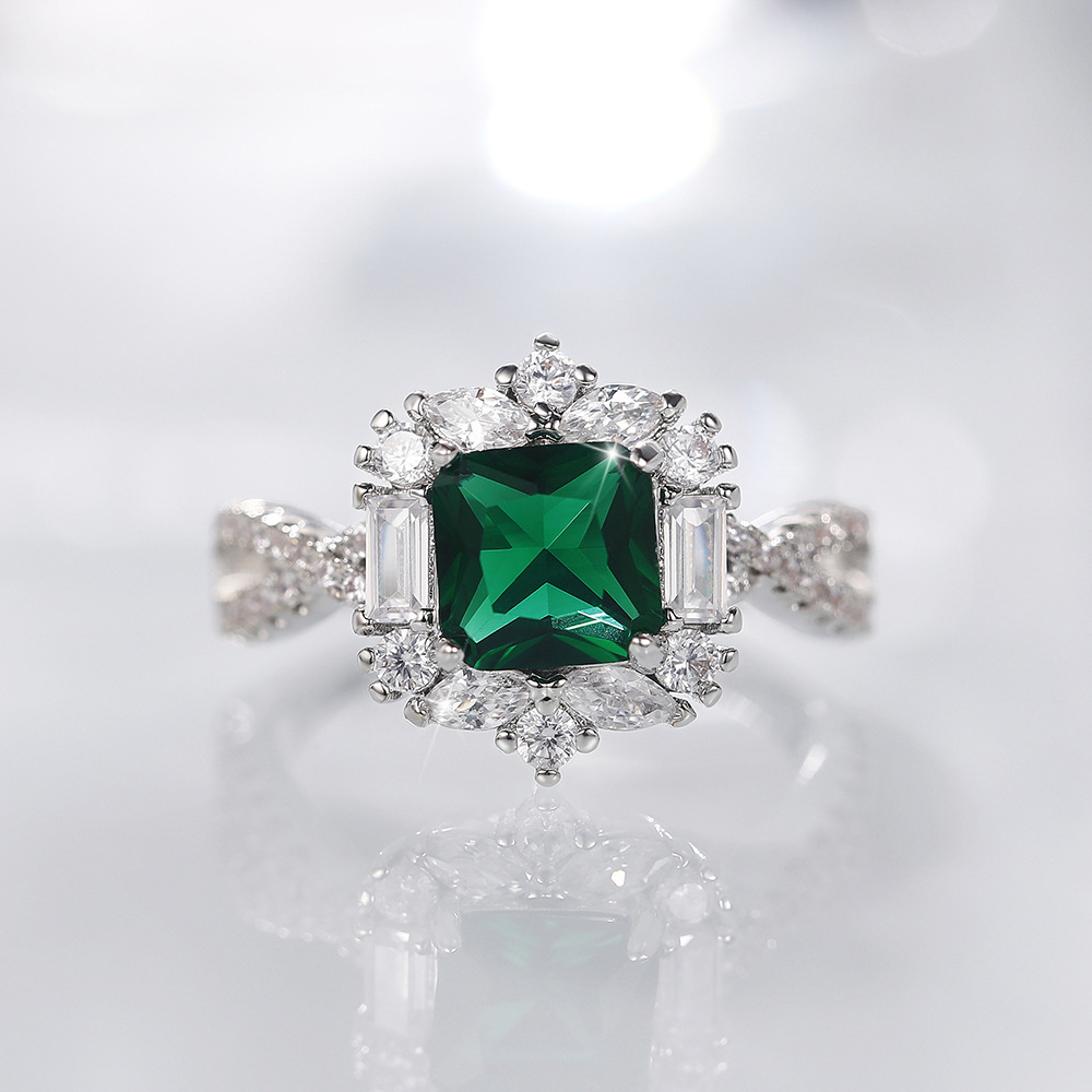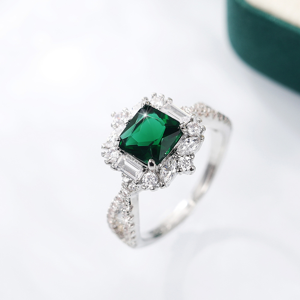 Seiko luxury emerald green princess square zircon wedding ring European and American fashion women's engagement ring