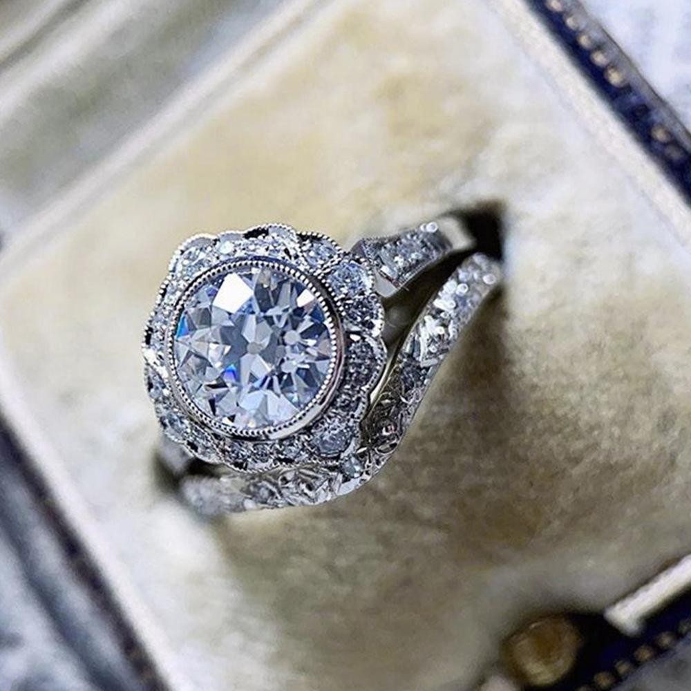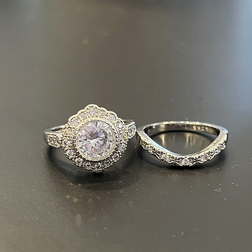 Shiny zircon ring two-piece set retro elegant niche design set ring female live jewelry