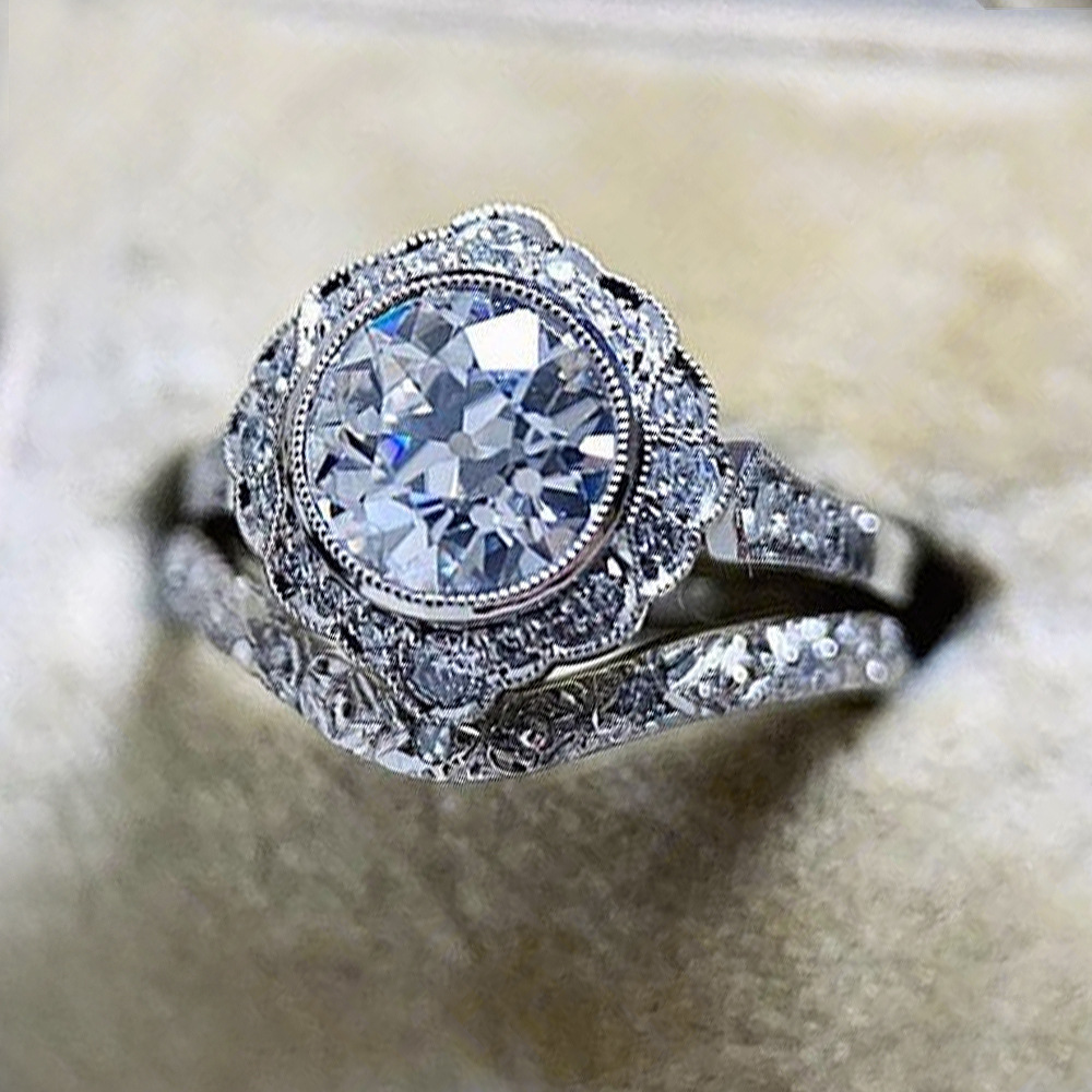 Micro-inlaid celebrity style classic all-match popular ring six-claw zircon wedding ring European and American style light luxury ring