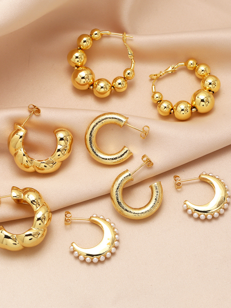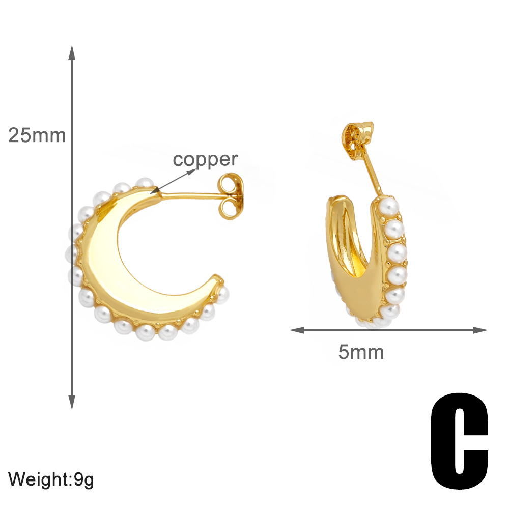 Simple and fashionable C-shaped pearl earrings niche light luxury all-match round gold-plated earrings accessories erz25