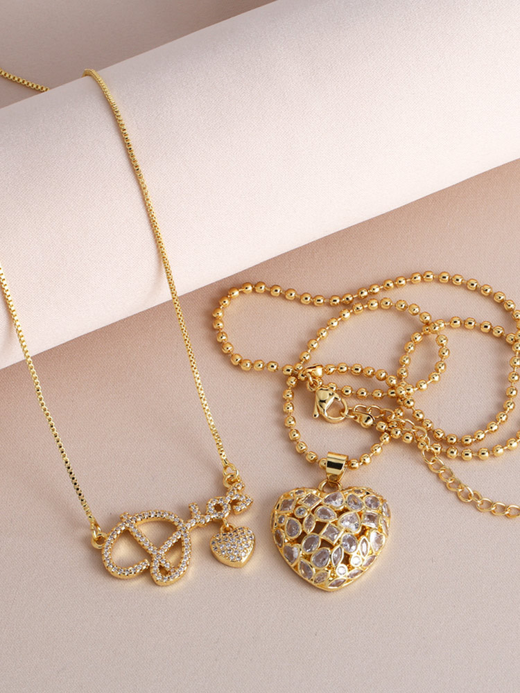Simple and fashionable love necklace for women, personalized and creative, inlaid with zircon and gold-plated clavicle necklace nkb857