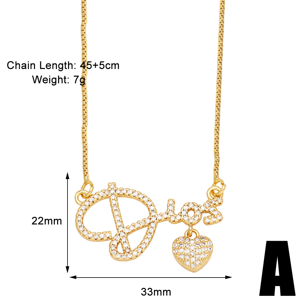 AS jewelry 26 English letters necklace female copper plated real gold inlaid zircon clavicle chain nky42