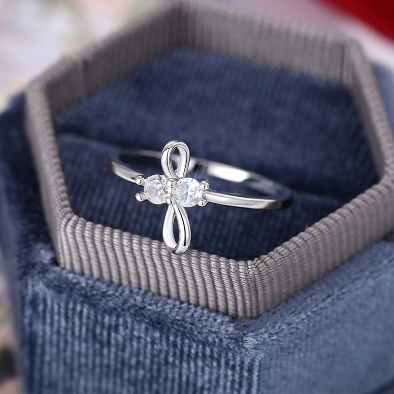 New zircon ring hollow cross four claws fashion design proposal wedding ring birthday gift ring
