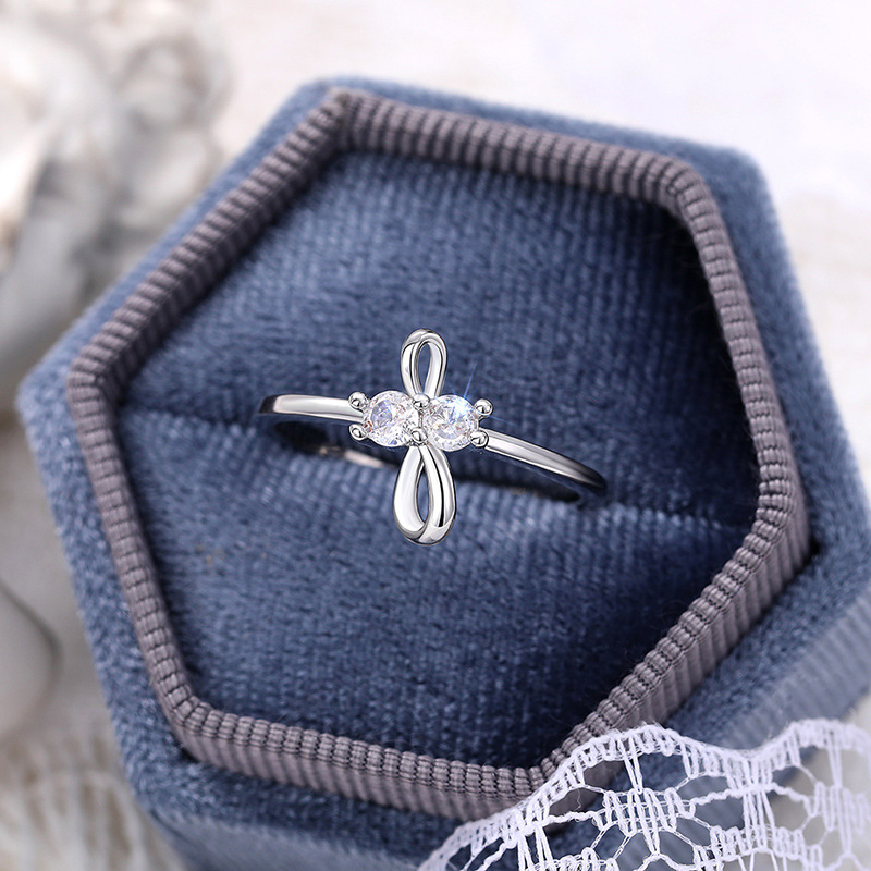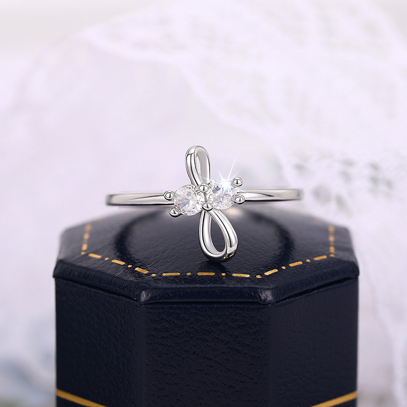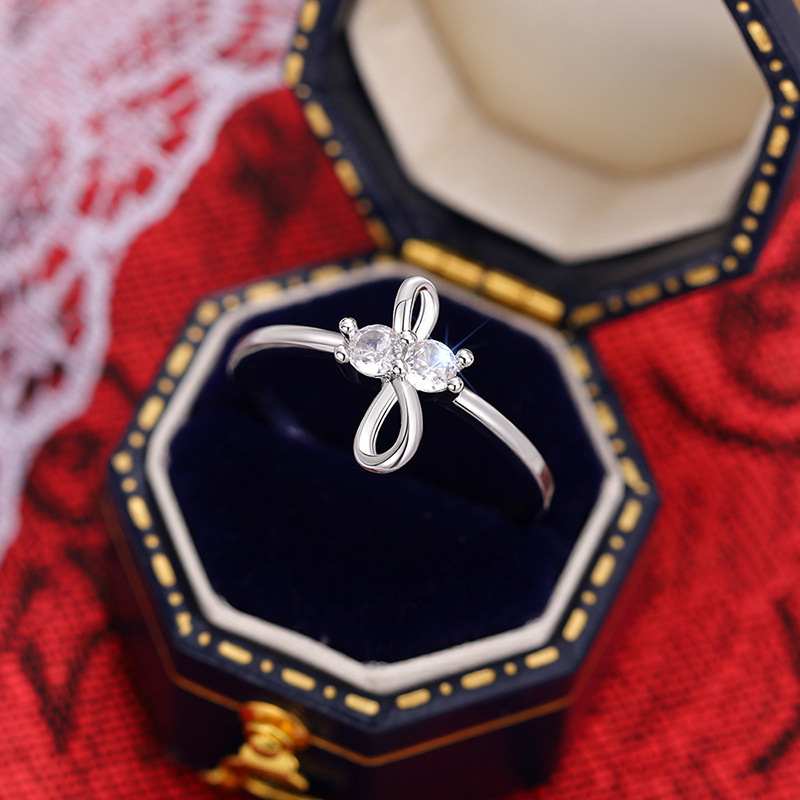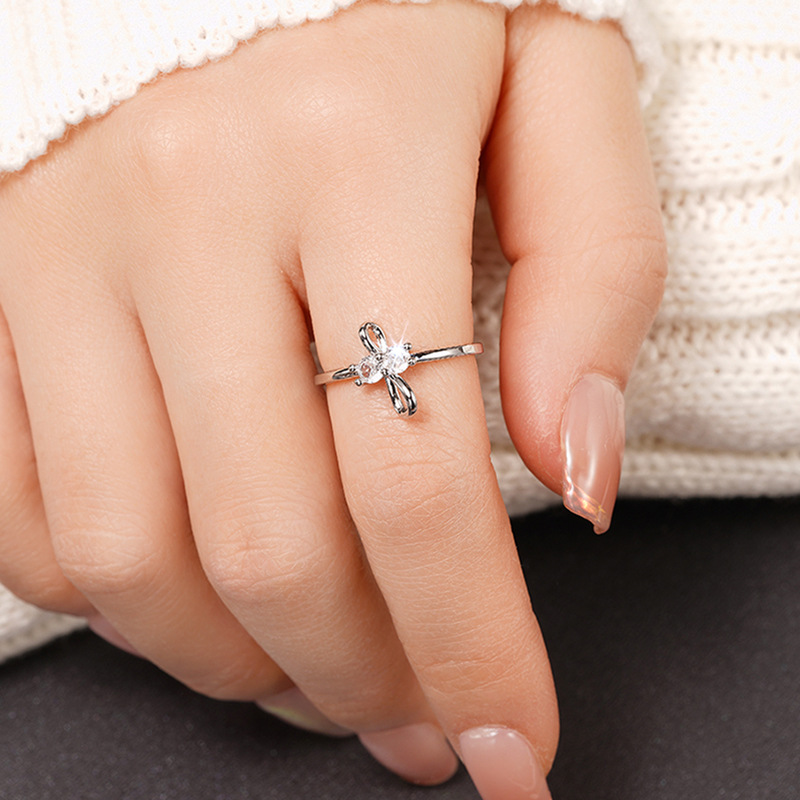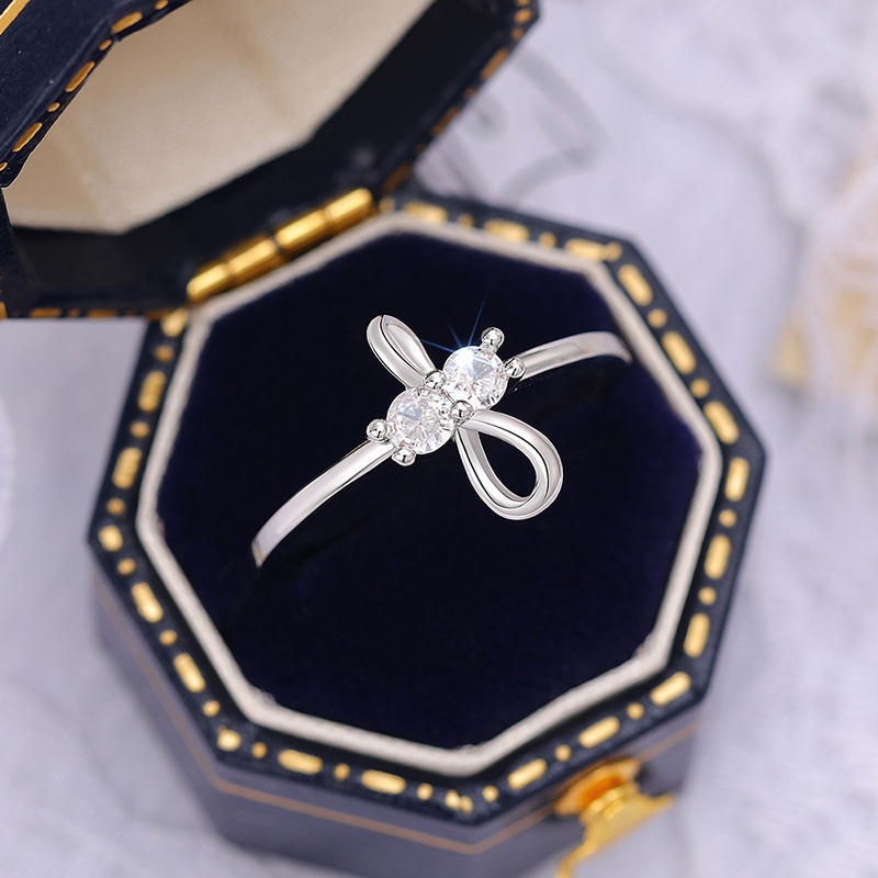 Simple bow zircon ring for women, daily matching ring for girls, popular and classic plain ring
