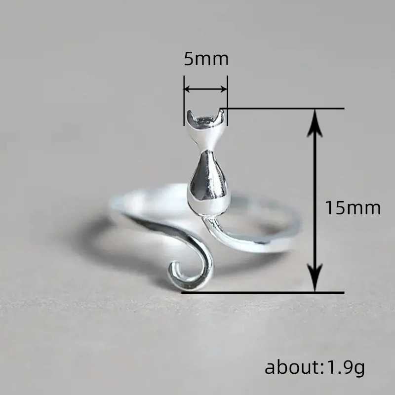 Simple cute kitten ring for women open style cat ears and cat tail ring small animal cartoon jewelry