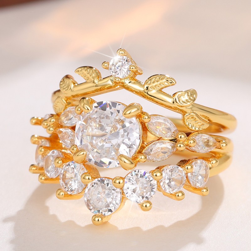 Simple diamond ring for women, fashionable and personalized ring, niche ring set, British court retro style two sets of rings