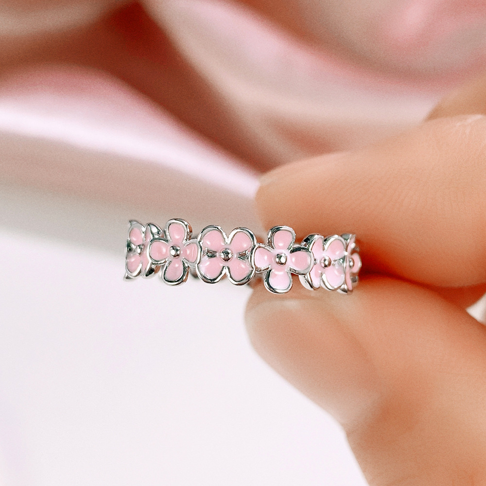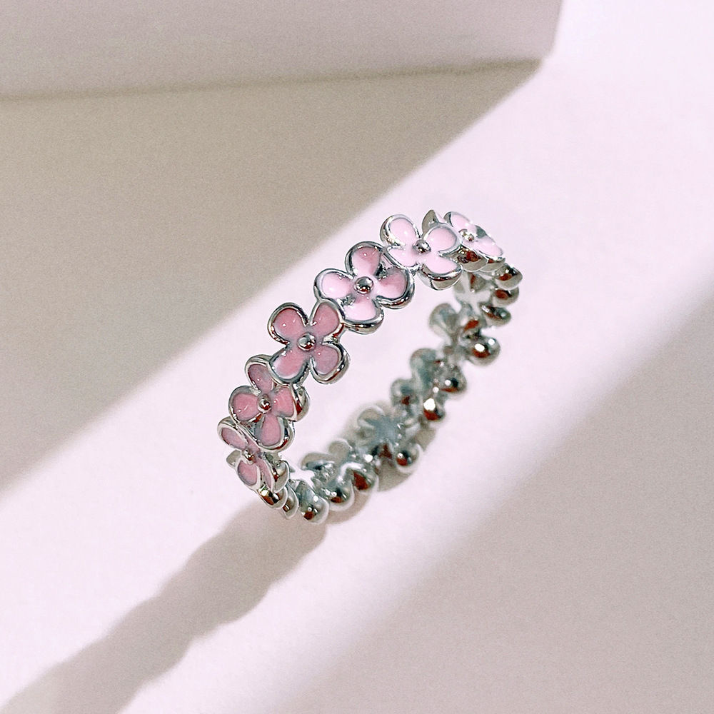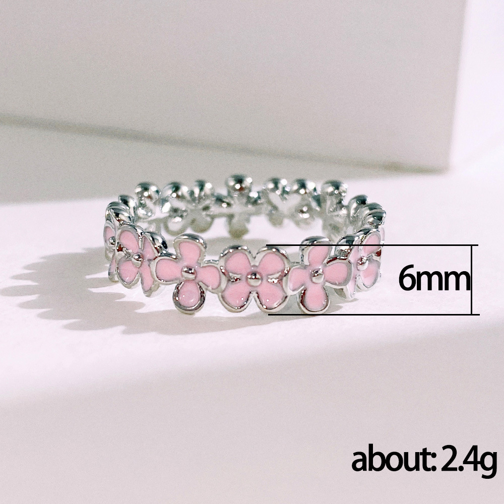 Simple forest pink flower dripping glue ring romantic braided wreath index finger ring sweet student hand jewelry