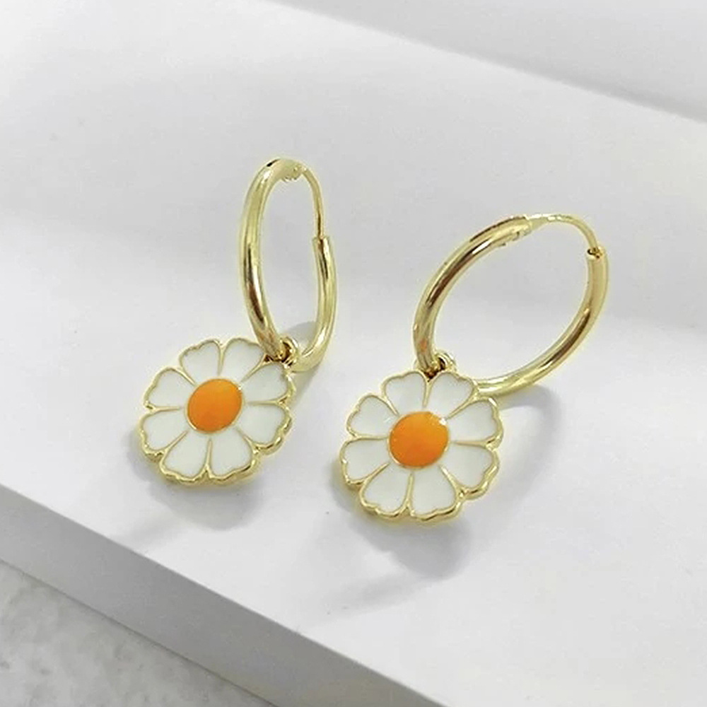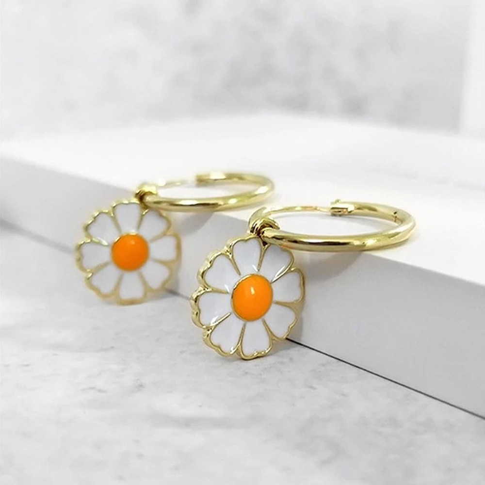 Simple girly metal glaze daisy earrings trendy flower ear buckles creative frangipani earrings for women