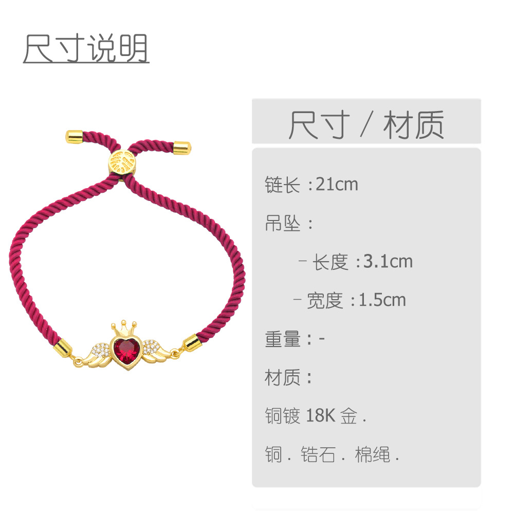 Simple high-end crown angel wings love bracelet female niche design heart-shaped red rope bracelet brg93