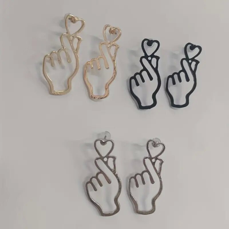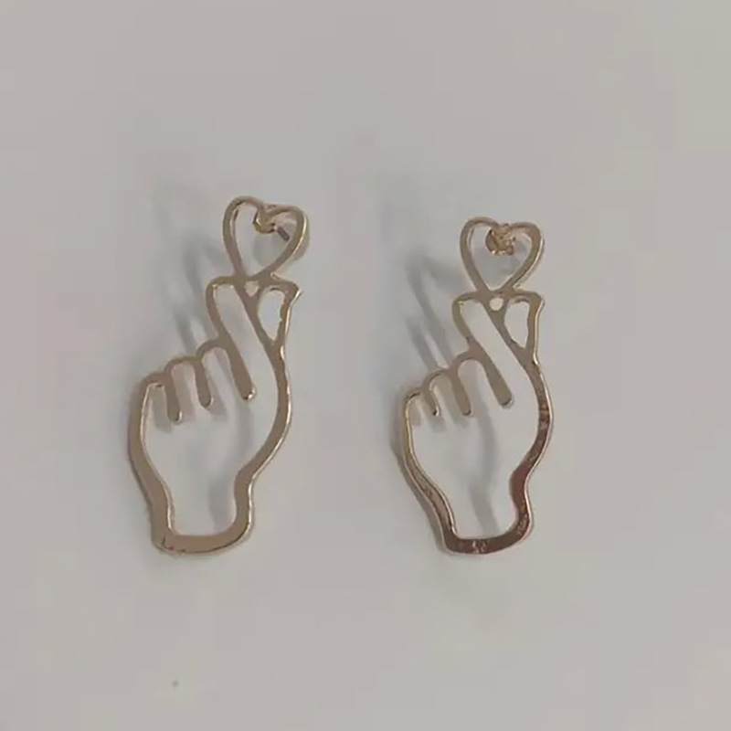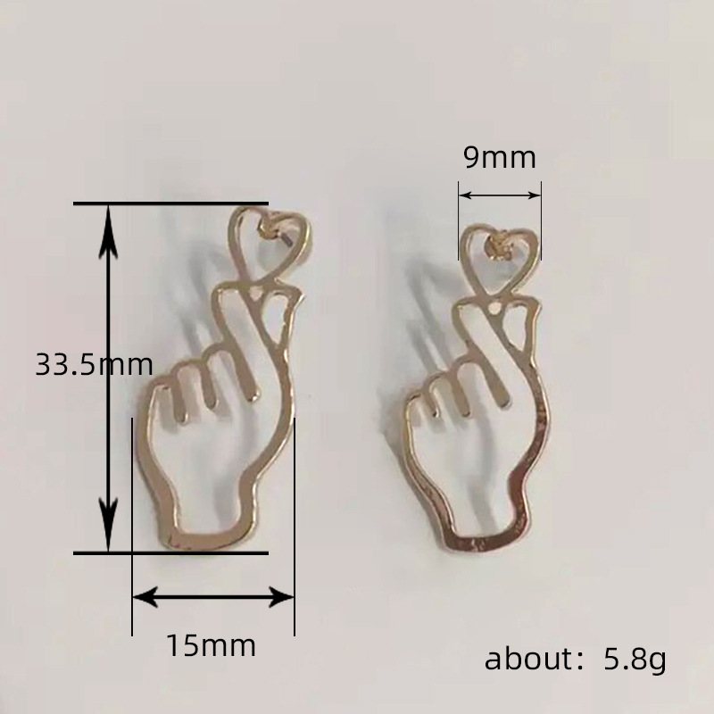 Simple hollow heart earrings for women, personalized European and American exaggerated metal earrings, gesture temperament earrings