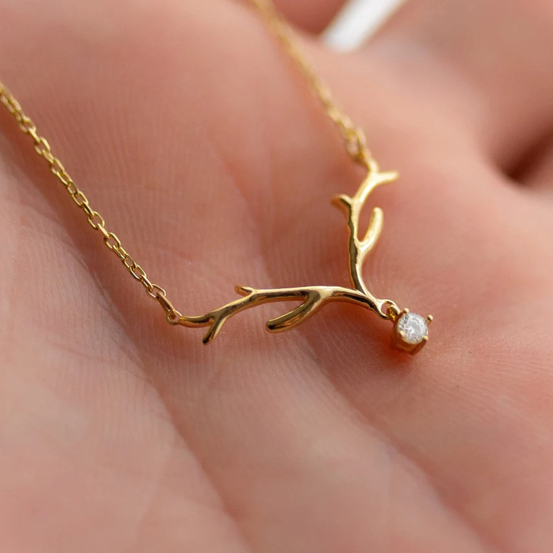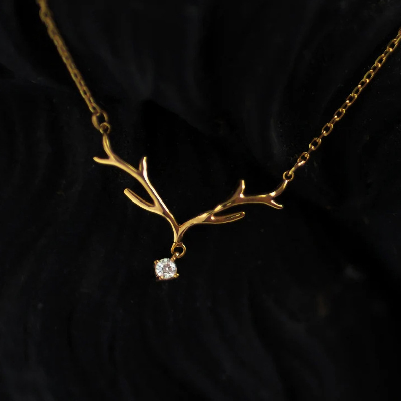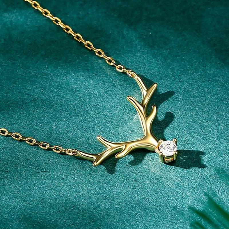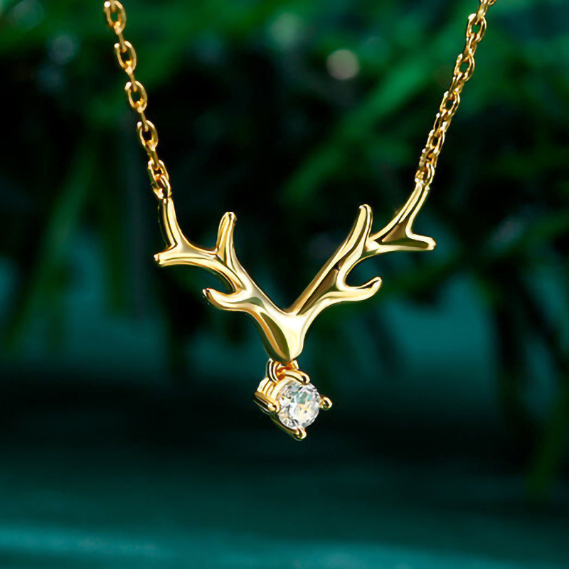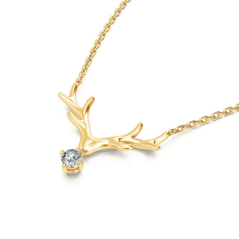 Simple large deer antler pendant necklace inlaid with zircon fashion jewelry women's Christmas holiday classic necklace