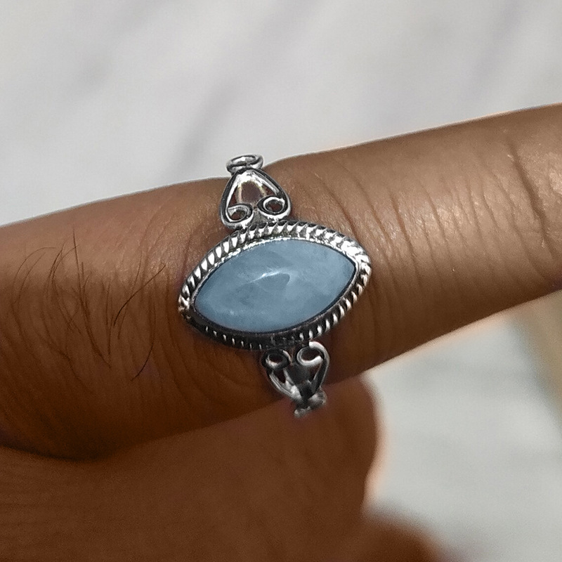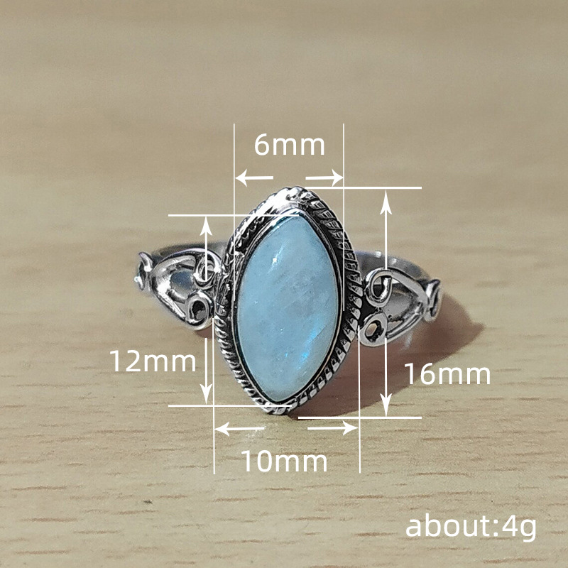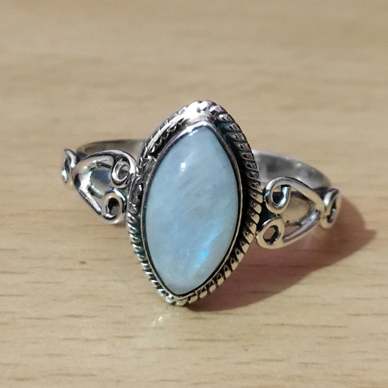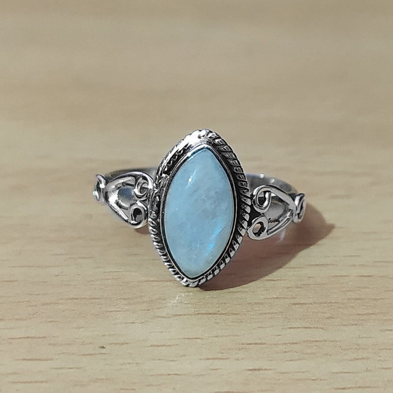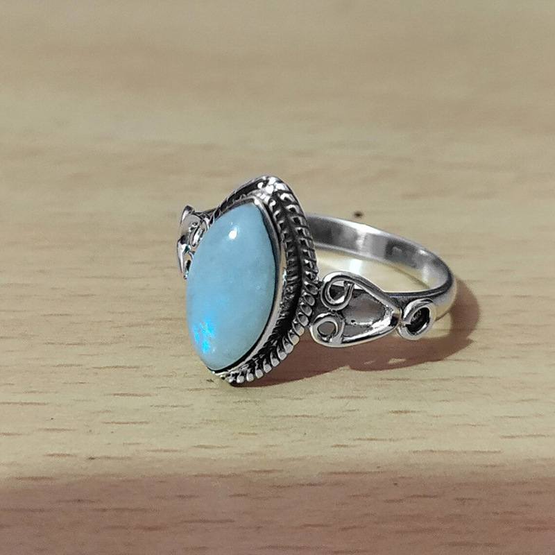 Simple Larimar ring sweet retro jewelry gift marquise shape European and American palace style ring