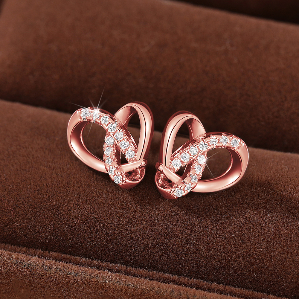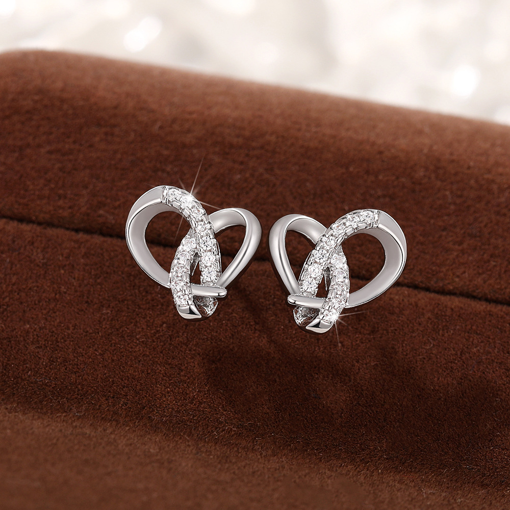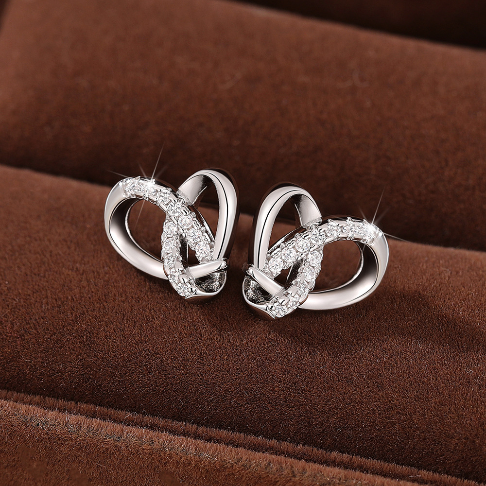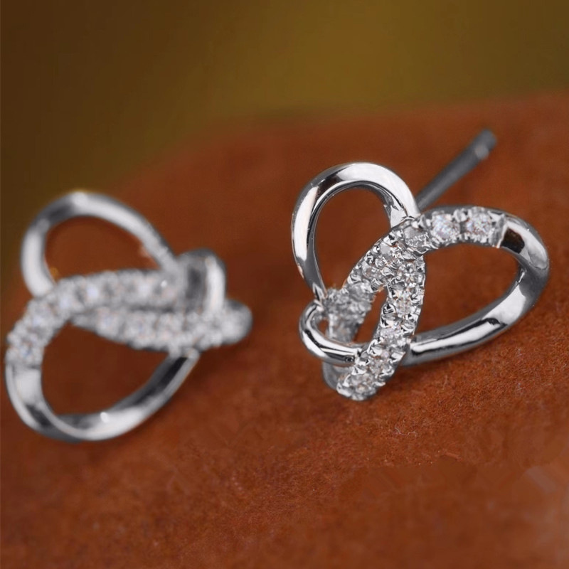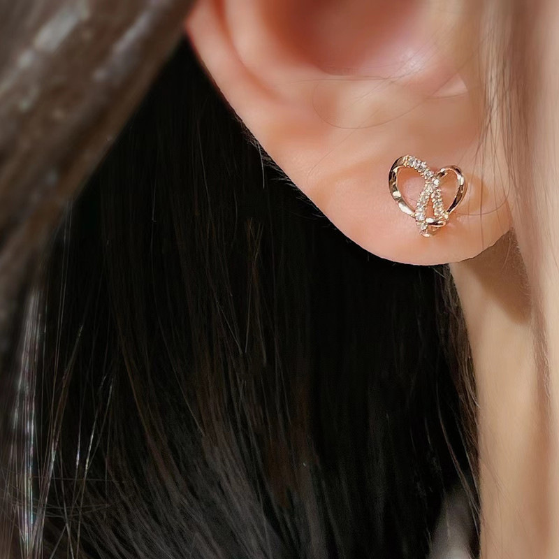 Simple, light and luxurious earrings with high-end sense, twisted triangle micro-inlaid earrings, French romantic heart-shaped earrings for women
