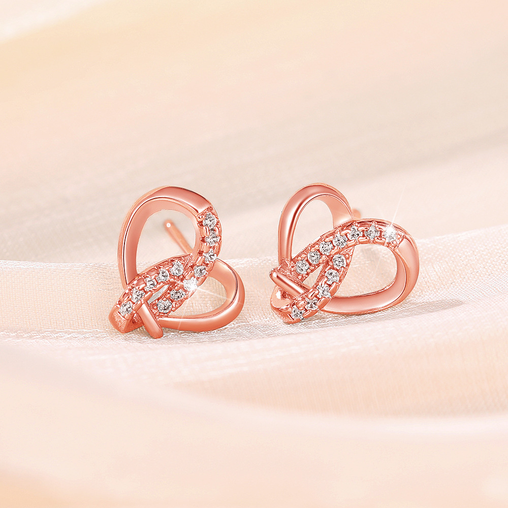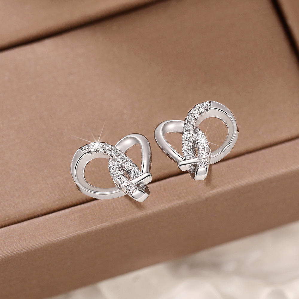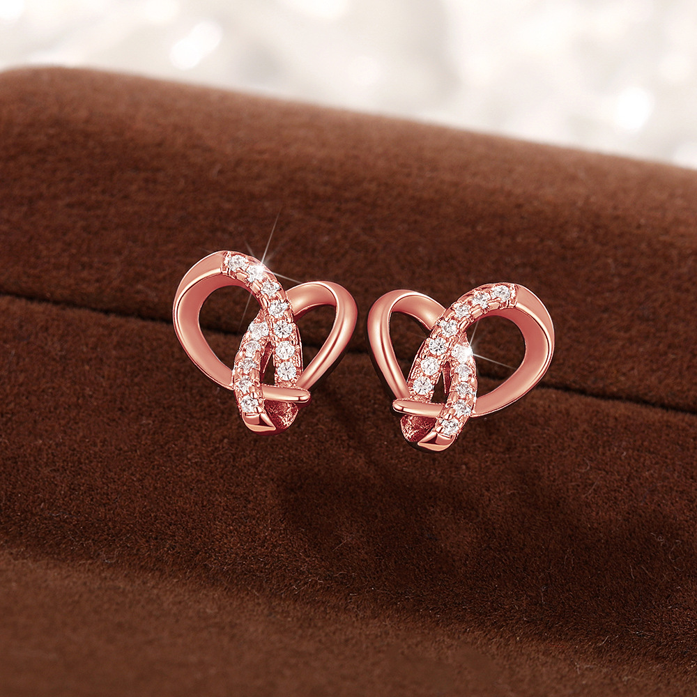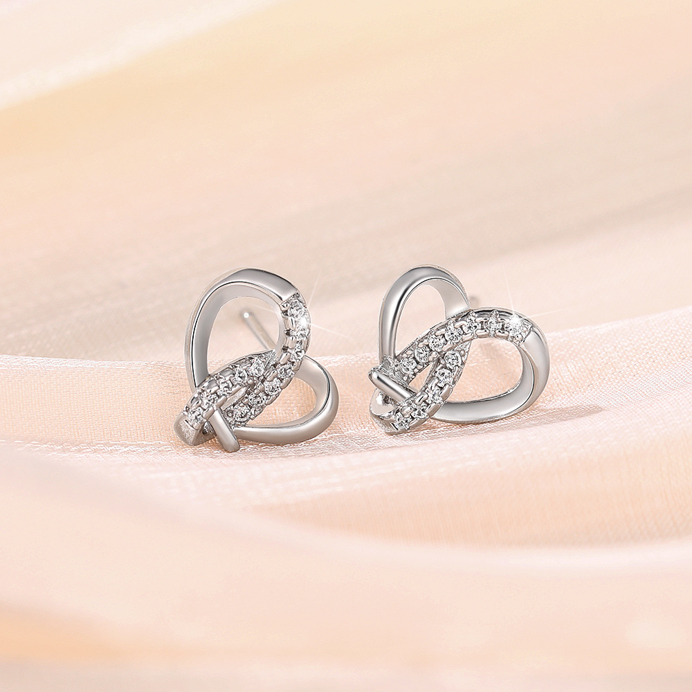 Simple, light and luxurious earrings with high-end sense, twisted triangle micro-inlaid earrings, French romantic heart-shaped earrings for women