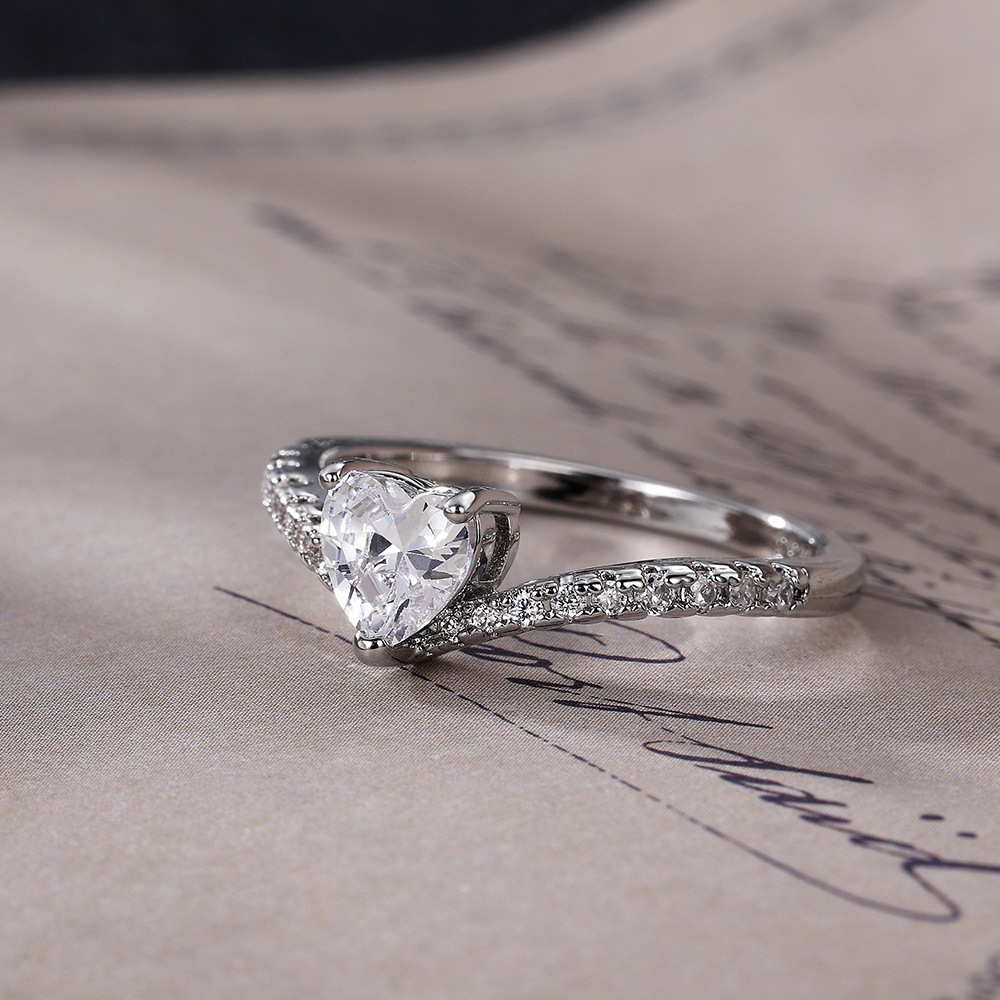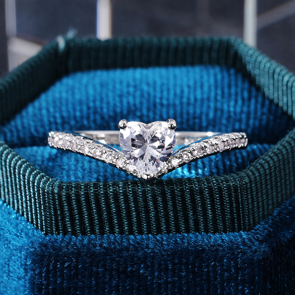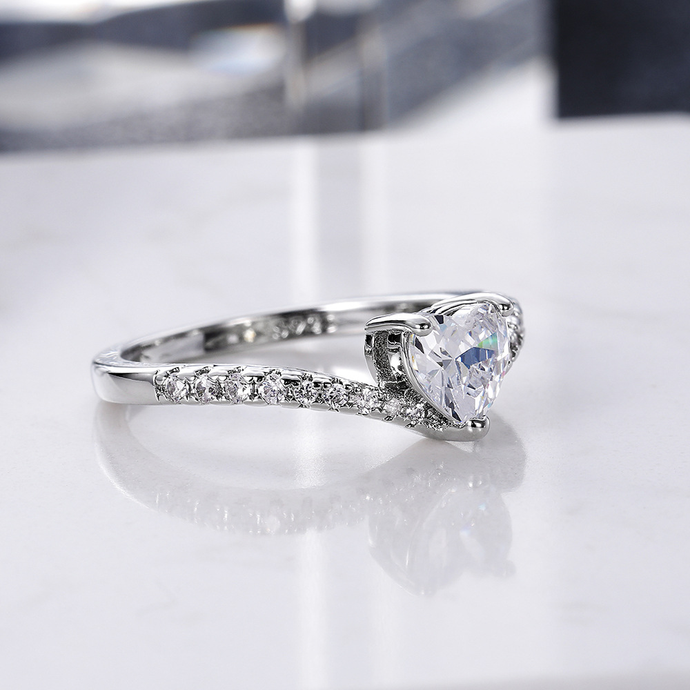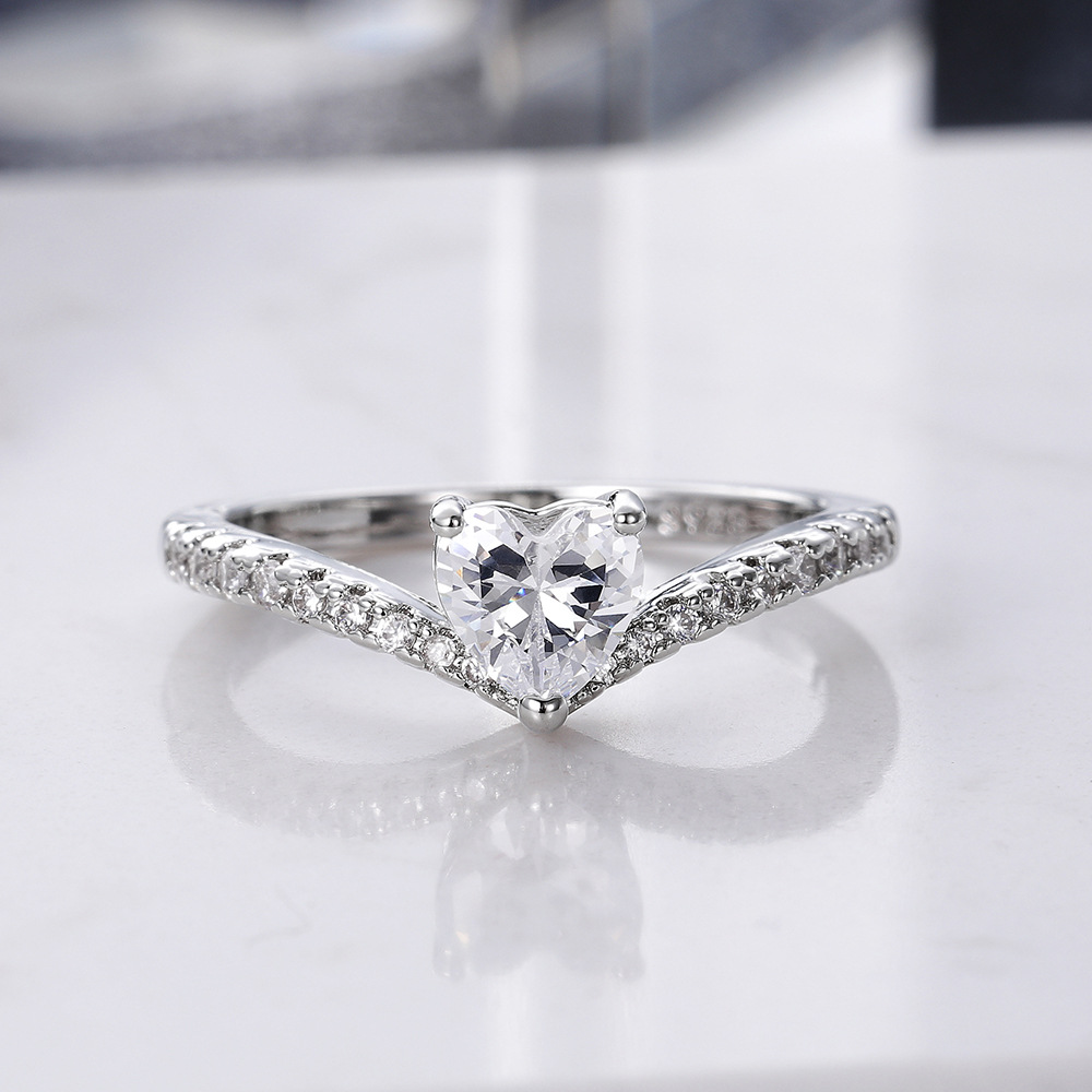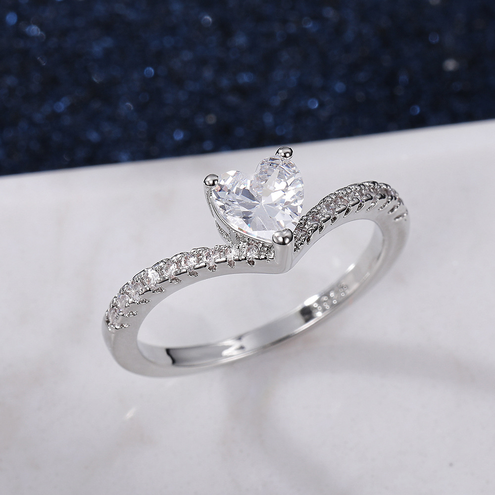 Simple new heart-shaped ring fashion trend index finger love zircon ring platinum plated ring female