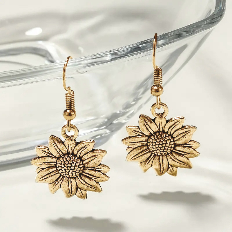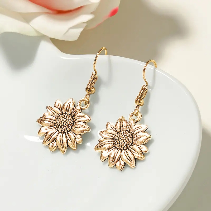 Simple personality metal ear hook sunflower high-end elegant earrings new plant flower earrings