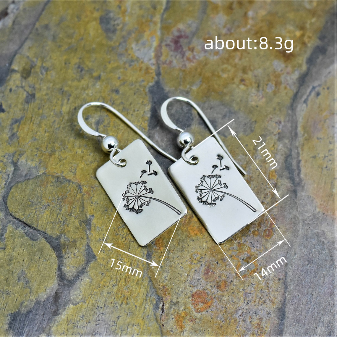 Simple retro rectangular dandelion earrings hot selling earrings to modify face shape female ear hooks
