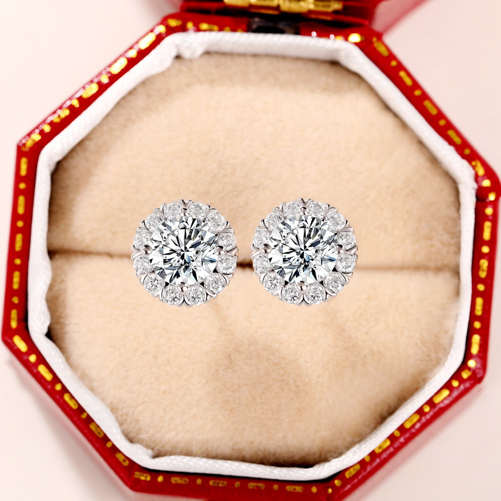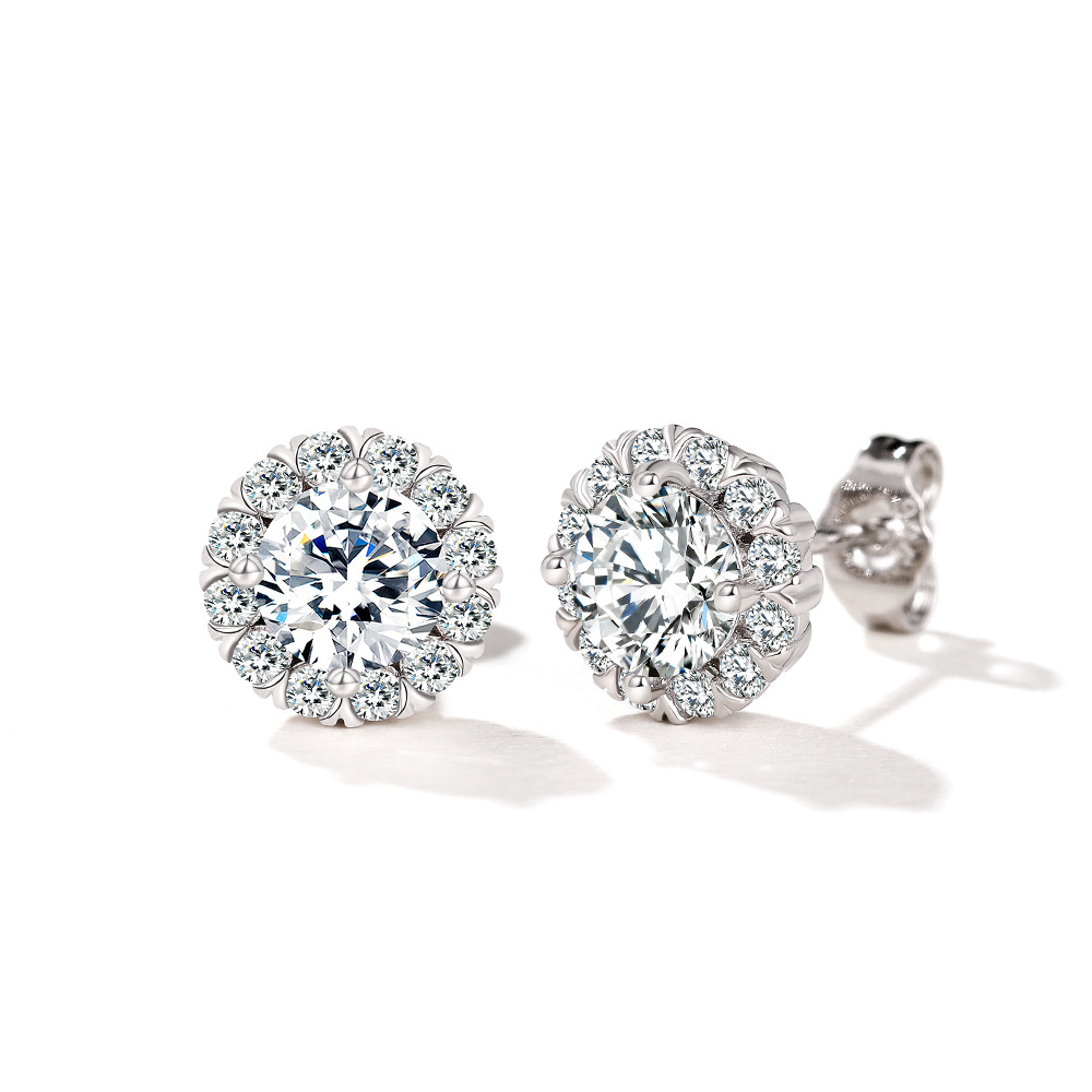 Simulated diamond snowflake earrings for women classic four-claw light luxury women's earrings versatile live zircon earrings