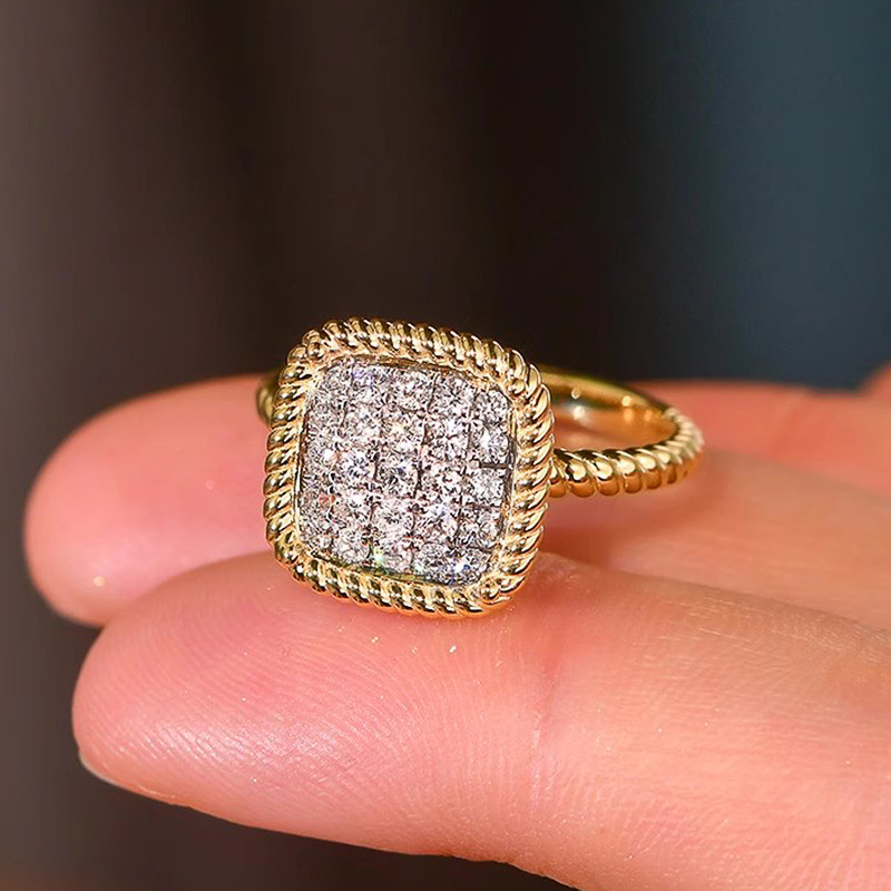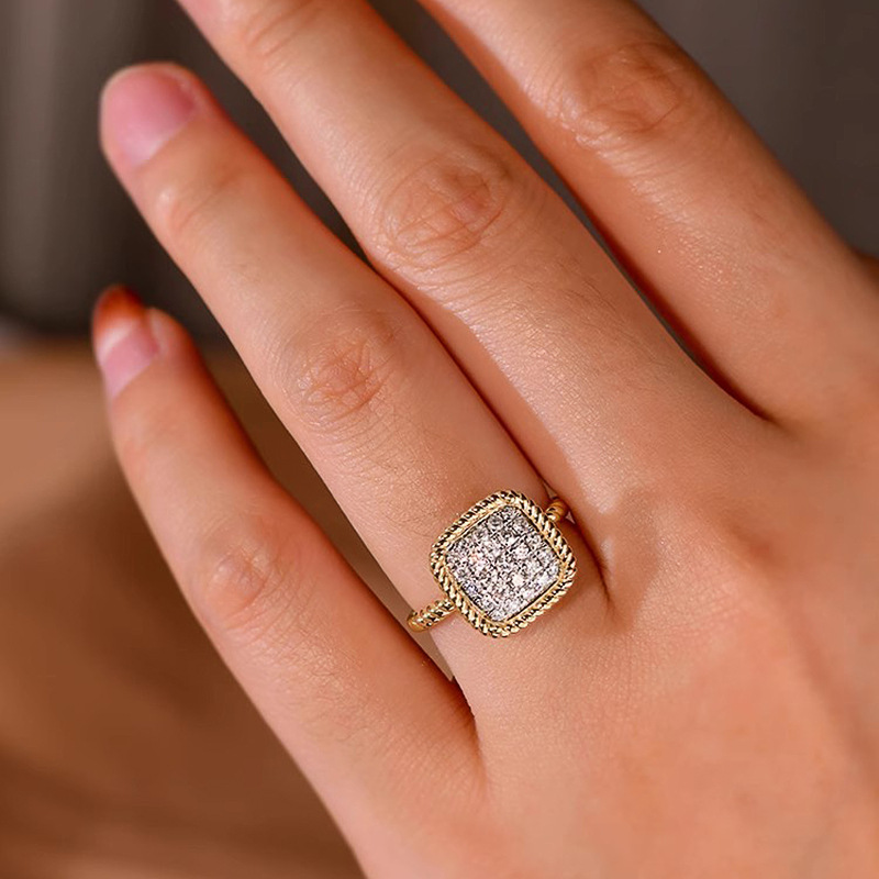 Hot selling new princess square ring European and American hot style inlaid zircon women's jewelry engagement proposal ring