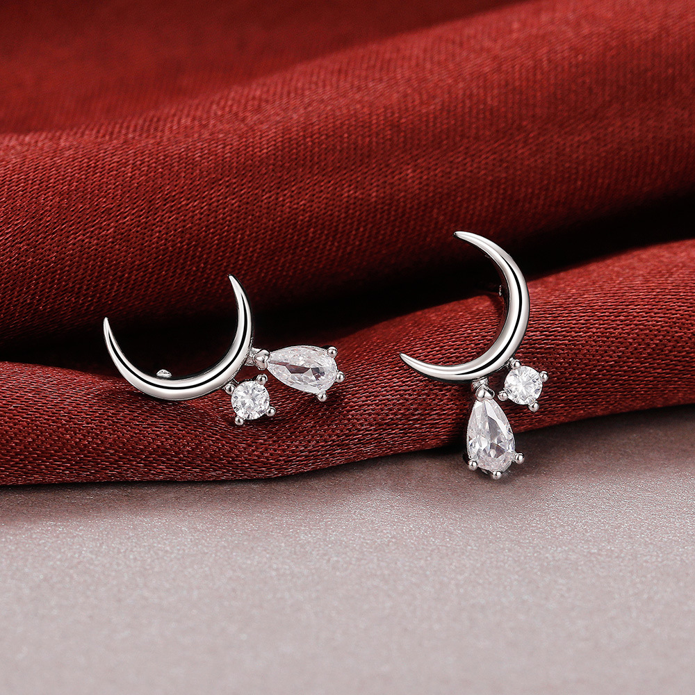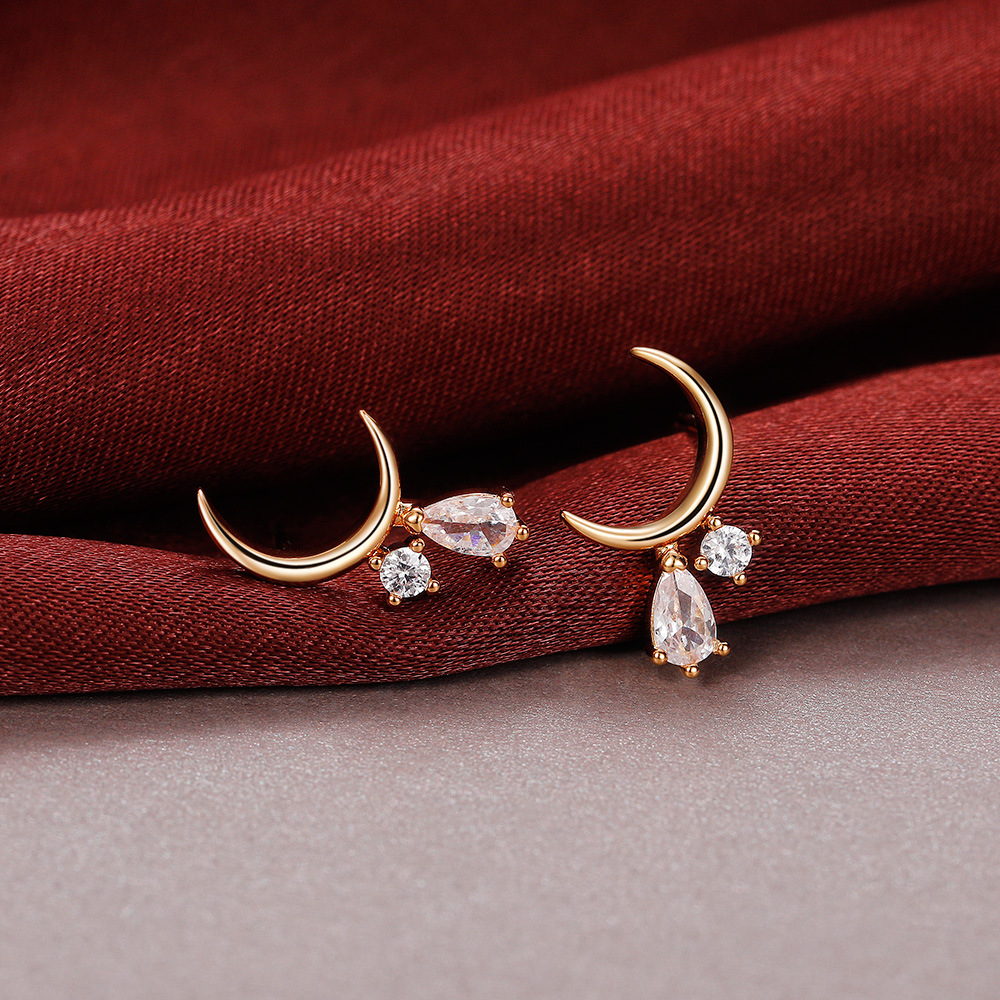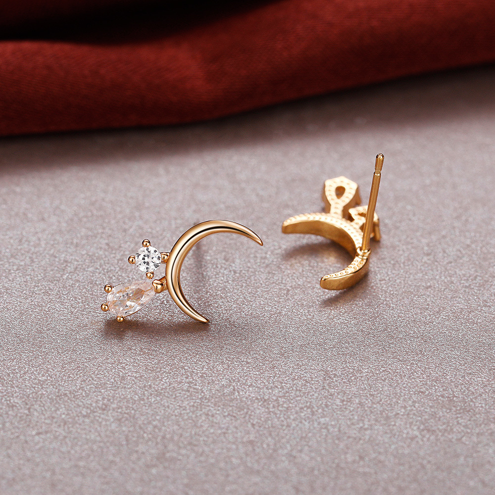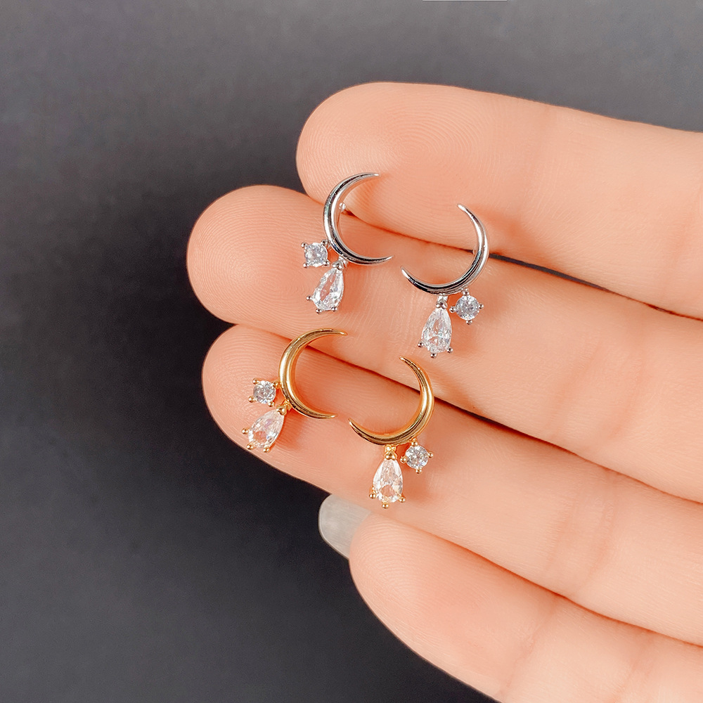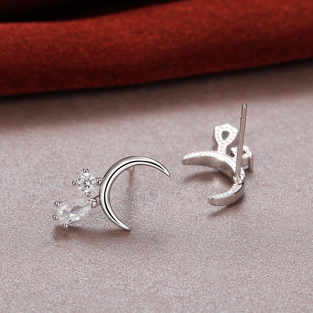 Small curved moon shaped zircon earrings for women Japanese and Korean style mini internet celebrity small earrings for sleeping without taking them off