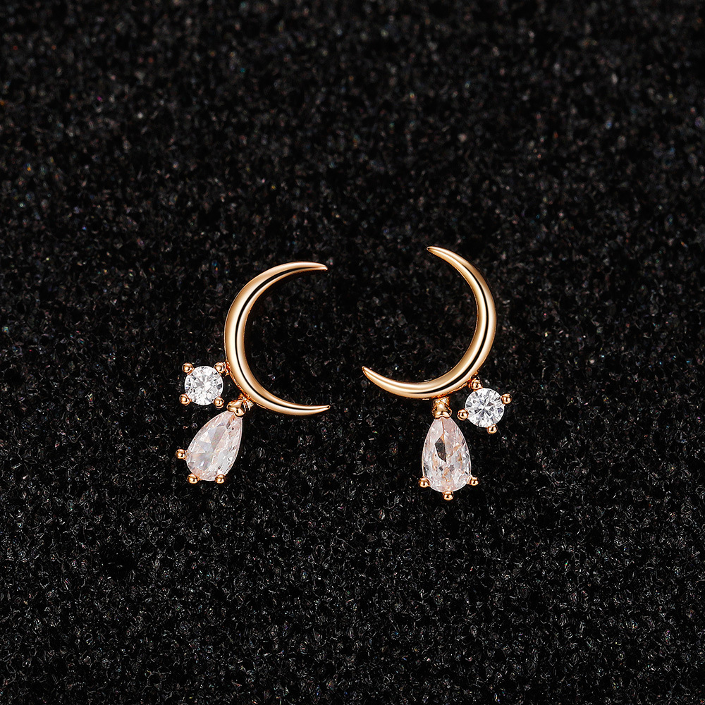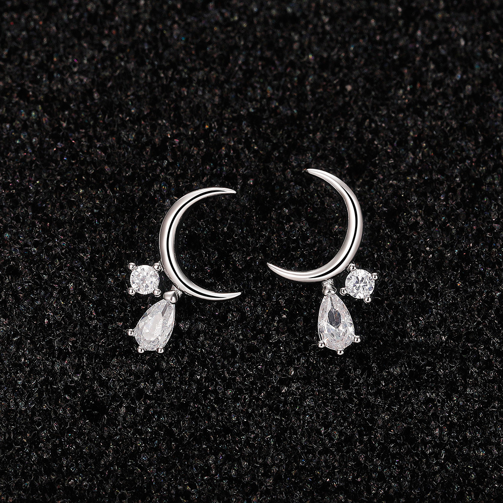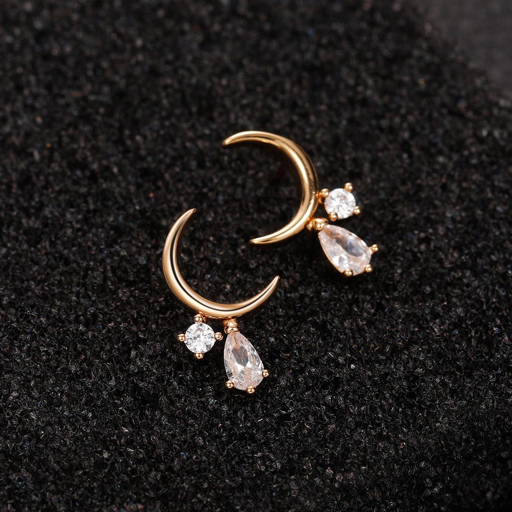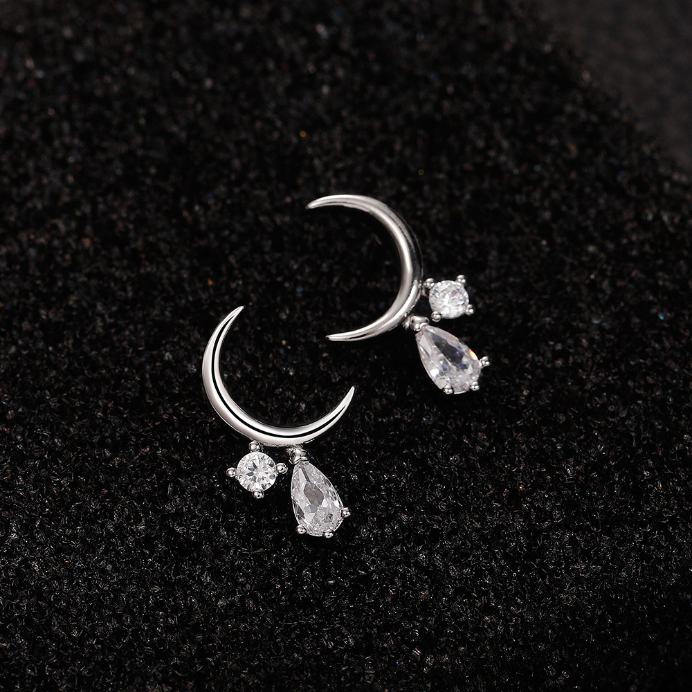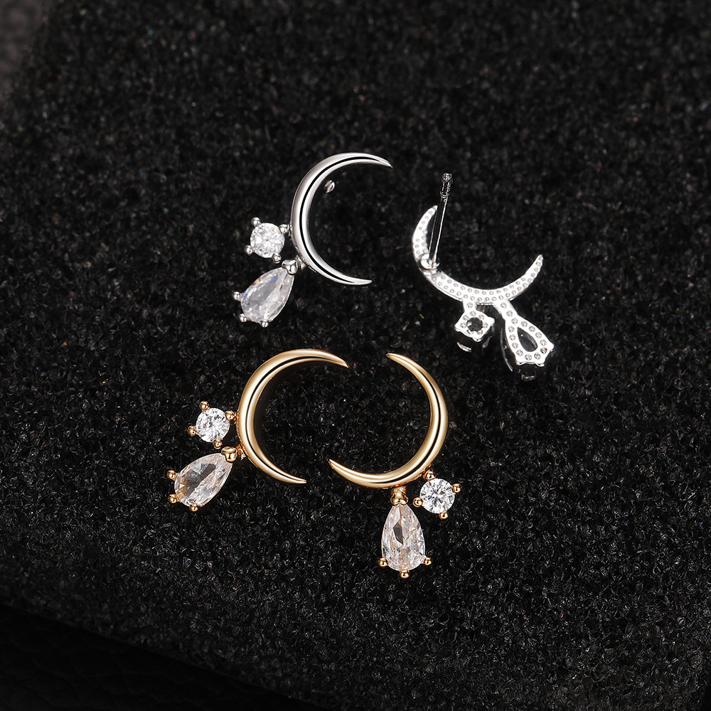 Small curved moon shaped zircon earrings for women Japanese and Korean style mini internet celebrity small earrings for sleeping without taking them off