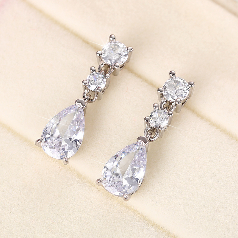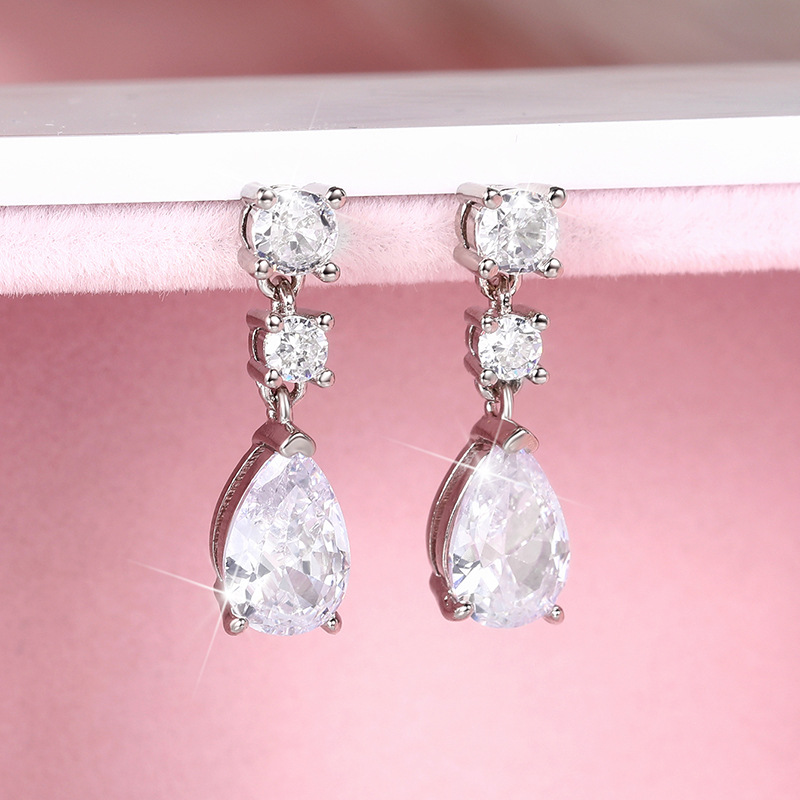 Small fresh classic teardrop earrings light luxury micro-inlaid pear-shaped zircon bridal banquet temperament earrings for women