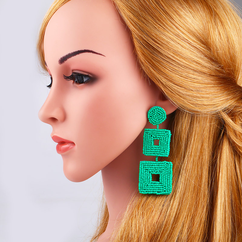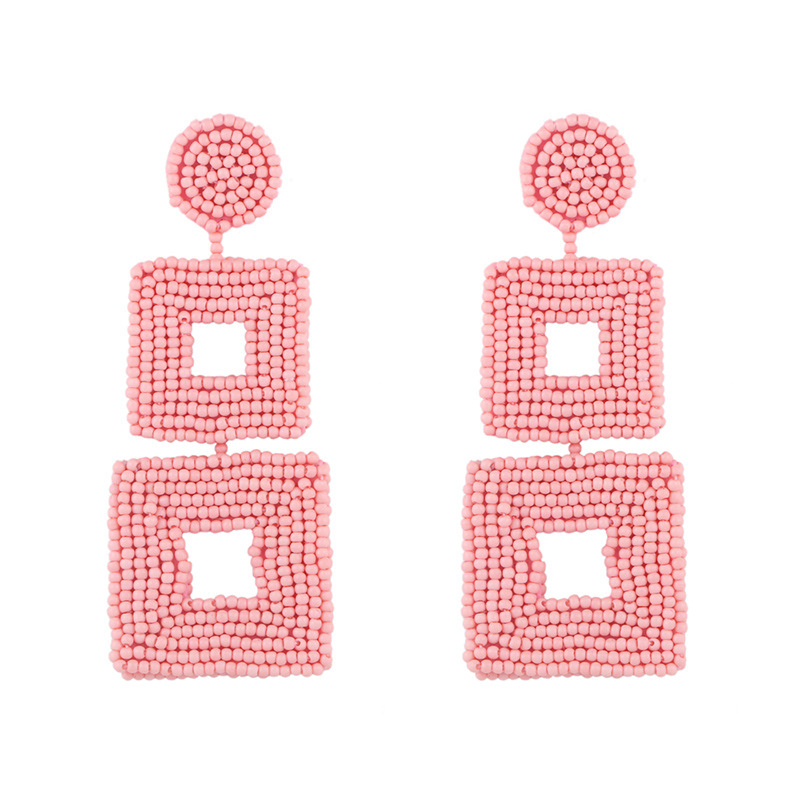 Source Creative woven double-sided rice bead earrings geometric square earrings factory direct sales erq15